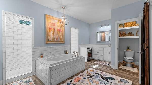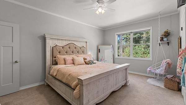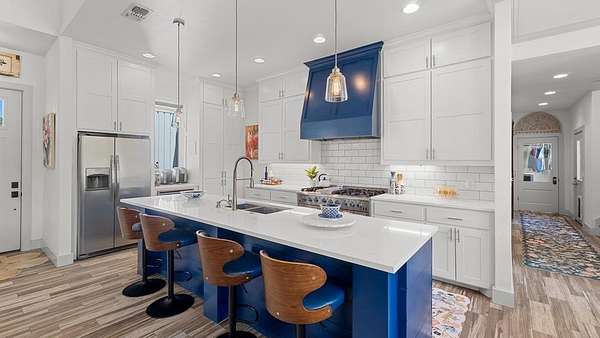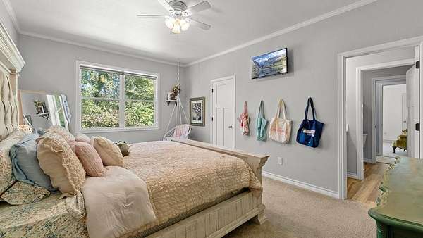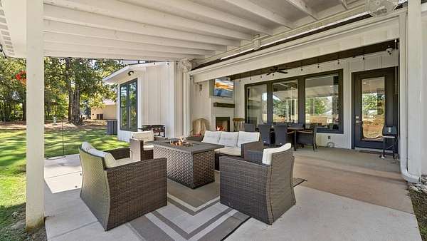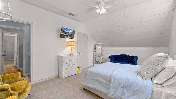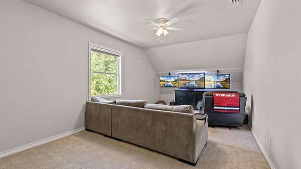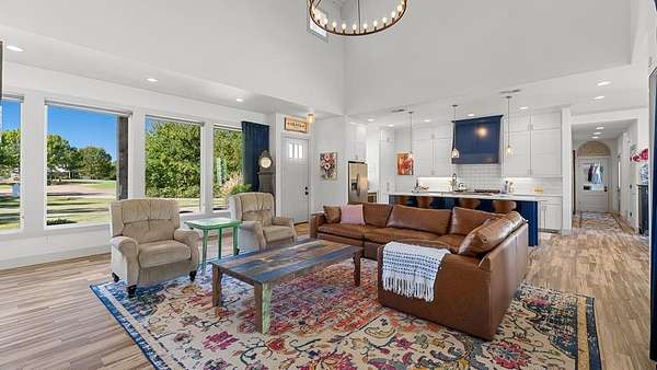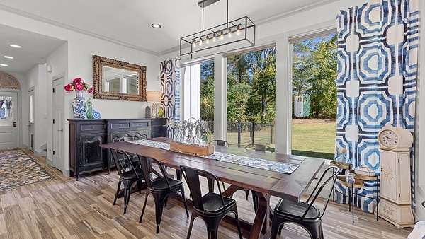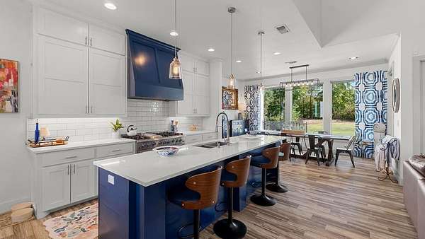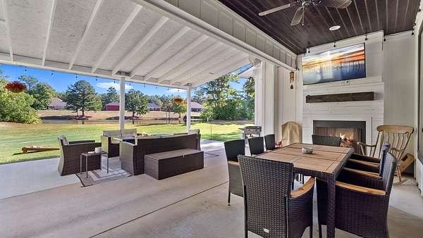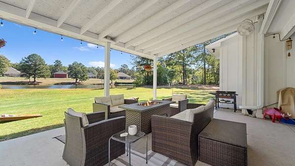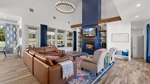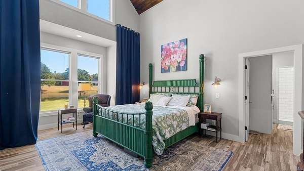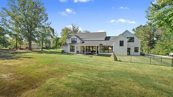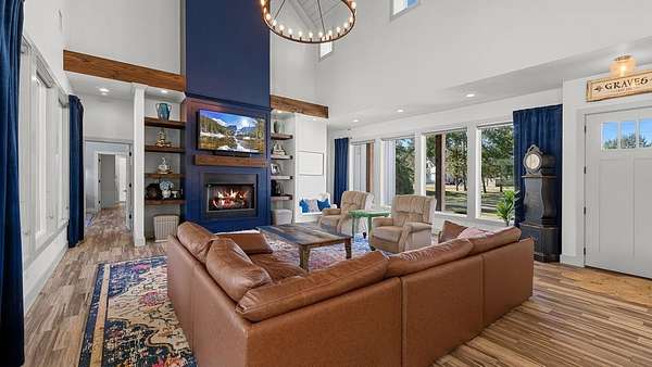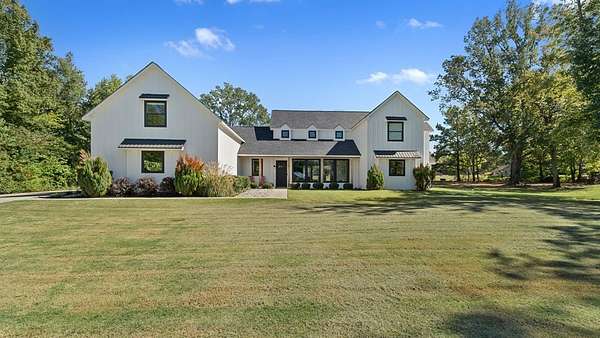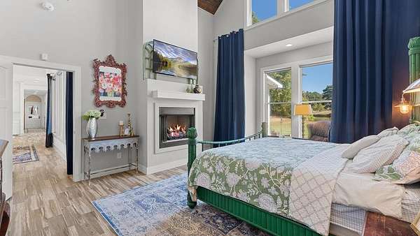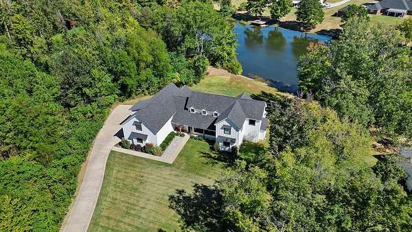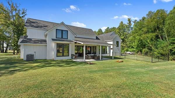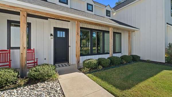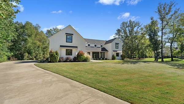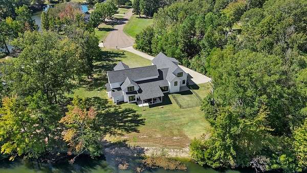 This fully customized lakefront farmhouse is built to captivate and inspire. From the moment you step inside, you'll be amazed by the soaring vaulted ceilings and distinctive architectural details that set this home apart. The open-concept design seamlessly connects the living room, kitchen, and dining area, making it perfect for entertaining. A dream for any chef, the kitchen features a high-end 6-burner gas stove top. With four spacious bedrooms, three and a half bathrooms, and three versatile bonus rooms, this home offers exceptional flexibility. The mudroom, complete with an attached office nook, is conveniently situated near the three-car garage entrance. The master suite is a luxurious retreat, boasting vaulted ceilings, a fireplace, and an expansive bathroom and closet. In total, the home includes three fireplaces, including one on the back patio for cozy outdoor gatherings. Additionally, a built-in mosquito repellent system enhances outdoor comfort. Designed with accessibility in mind, the second downstairs bedroom features extra-wide doorways and a walk-in shower. Plus, the home is equipped with high-speed fiber optic internet for seamless connectivity. This remarkable property truly has it all-don't miss the opportunity to see it for yourself. Schedule a private showing today!