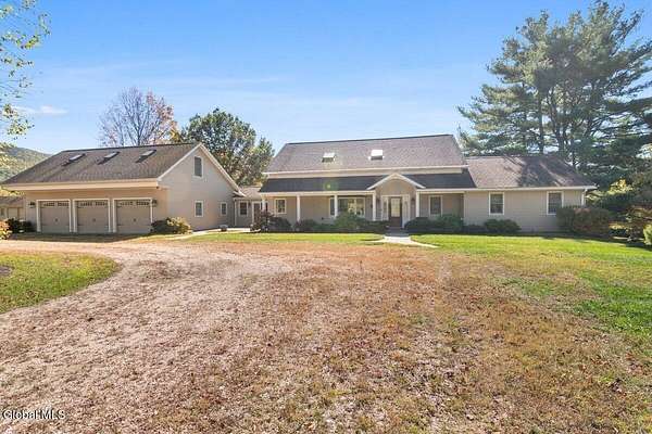 ''Location Paradise Location'' Every day will feel like a vacation in this country paradise. Cross the covered bridge,turn left onto the dirt road leading to your very own slice of heaven. Property spans over 20 acres w/1,080 feet of road frontage & more than 1,200 feet along the Battenkill River, yet it's less than 20 minutes to Manchester, VT, & under 45 minutes to Saratoga, NY,or Williamstown,MA. As you pull into the driveway, you'll be greeted by meticulously maintained estate w/stunning country views. Step into this custom-built, 2,600+ sq ft home, featuring only the finest amenities and attention to detail. The open floor plan is designed for quality family living and entertaining at its best. The living room with a fireplace connects to a sunny family room overlooking two-level stone patios, complete w/ a firepit & an in-ground saltwater heated pool offering breathtaking views of Grandma Moses country. On main level, you'll find formal dining room, a gourmet dream kitchen with a breakfast nook, half bath, laundry room, & a spacious primary bedroom with an en-suite bathroom and two walk-in closets. Upstairs, there's an open-concept additional living space or in-law/guest suite, complete with a family room, patio doors leading to a two-level deck with a private entrance, a dining area, a kitchen, two bedrooms, and a full bath. The attached three-car garage includes a large open room that could serve as an office, extra bedrooms, or a personal retreat space. Outside, enjoy the privacy of this estate with its two-level custom stone patio, firepit, and heated saltwater in-ground pool, all with amazing views of the Battenkill River. The property boasts over 1,200 feet of prime river frontage and 1,080 feet of road frontage across three deeds. Conveniently located less than 20 minutes to Manchester, VT, 45 minutes to Saratoga, NY, or Williamstown, MA, & just an hour to New York Thruway or Adirondack Northway.