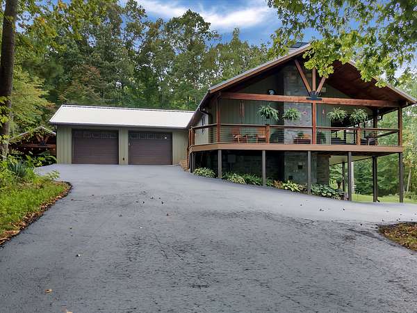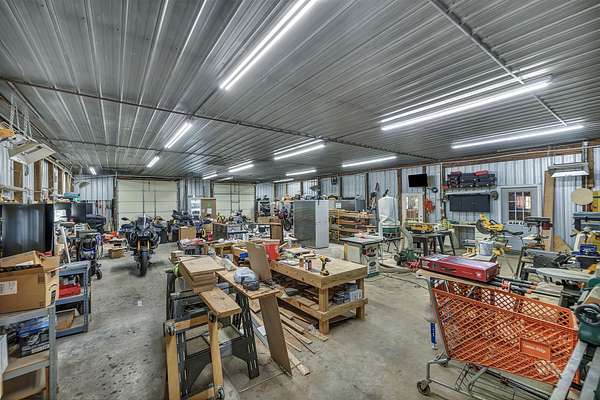 Custom built 2 bed/ 3 bath home on top of a wooded hill. Large office on main level could be used as a 3rd bedroom. In-law suite in the basement complete with kitchen and separate entrance with parking. Ideal property for equipment owner, car enthusiast, RVer, etc, with 5312 sq ft of insulated covered shop/storage including a 40x60 shop, 20x58 RV bay, 24x58 additional bay and 360 sq ft "man cave" (den, office, bathroom), all connected together. Additional 2040 sq ft of storage under the covered concrete apron around the complex. Replacement and improvements to the home in the last 3 years include: 31x33 Master bedroom suite - standing seem metal roof - 20x27 pavilion with rock fireplace, fire pit, 2 grills, large screen tv and sink - swim spa / hot tub - whole house generator - HVAC. She shed with porch near shop (14x36). Large pavement area (over 9000 sq ft) beside the shop complex with paved driveway up to home on the hill. The rest of the 13.6 acreage is top of hill behind the home or hillside. Wi-fi in home and shop complex. The following stay: all appliances (3 fridges, oven, microwave, dishwasher, washer/dryer), all pavilion furnishings (2 grills, large tv, misc chairs), pool table.