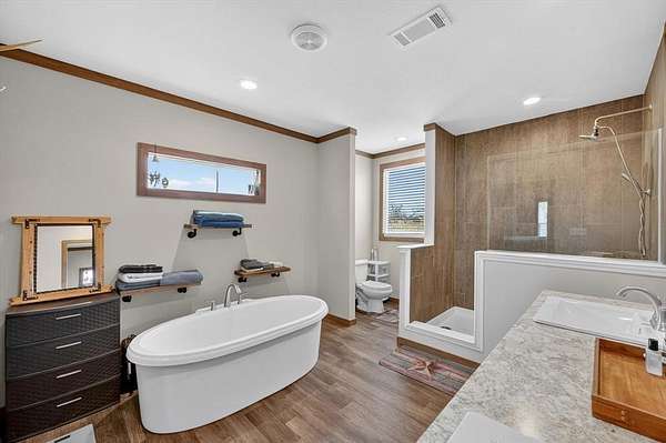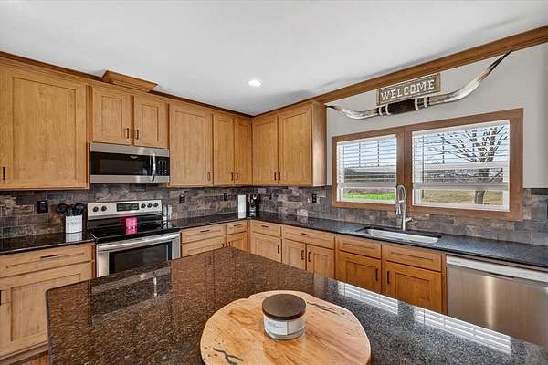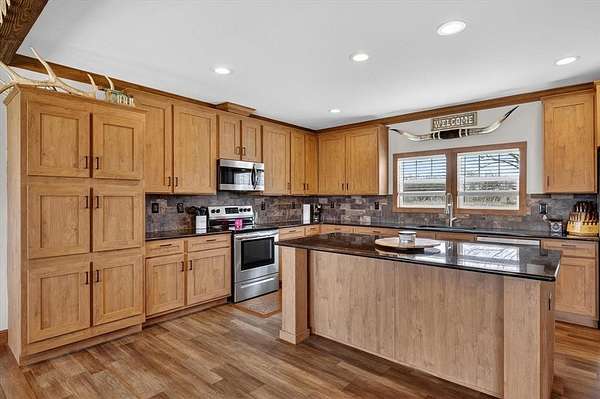 Enjoy peaceful country living on 4 fenced acres with this well-maintained 3 bedroom, 2 bathroom home offering space, functionality, and room to spread out. Inside, you will find an open concept layout with wood-accented tray ceilings, recessed lighting, and a spacious kitchen featuring abundant cabinetry, generous counter space, and a large island that anchors the living and dining areas. The primary suite provides a comfortable retreat, while the additional bedrooms offer flexibility for guests, office space, or hobbies.