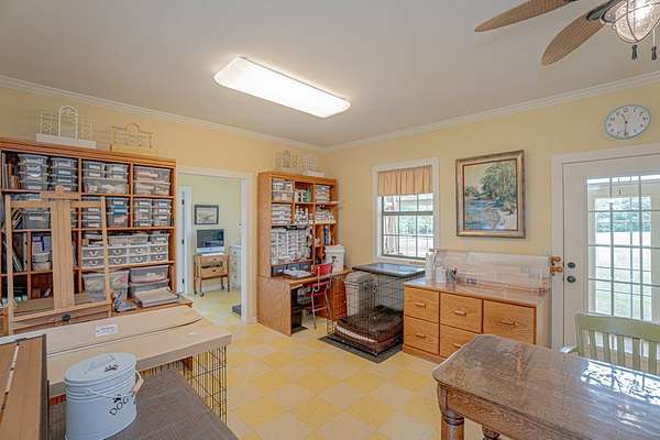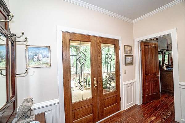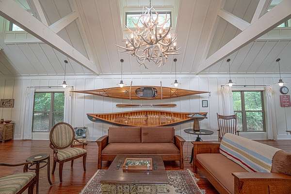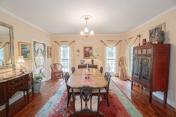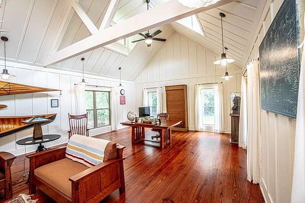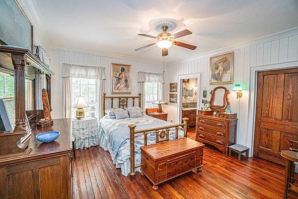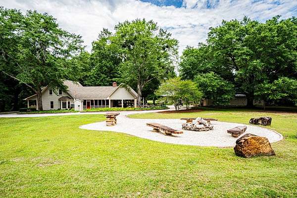 "Oak Knoll" is an exceptional 26.4 acre investment-grade estate located in Southeast Alabama, just 12 miles from Enterprise, Fort Novosel, and less than 2 hours from Florida's Emerald Coast scenic 30A beaches. This secluded, manicured property features a rare combination of timeless craftsmanship, historic charm, and modern connectivity, making it ideal for equestrian use, a private retreat, or multi-generational living. The centerpiece of "Oak Knoll" is the founders' residence, an approximate 2888 SF, 3-bedroom, 3.5-bath property which showcases reclaimed antique wide-plank wood flooring, soaring 12-foot ceilings, family room with a wood-burning masonry fireplace, handcrafted 9-piece solid wood Cove crown molding, and two primary bedroom suites--one on each floor--each with its own ensuite bath. The primary residence includes a dual purpose 2.5 carport & entertainment area, and fiber optic internet that services the entire estate. Oak Knoll has three guest homes, and craftsman workshop. "Pine Knott" is a circ., 1822 1-bedroom, 1-bath log cabin built in KY with "Half Dovetail" construction, wood burning FP, kitchen,dedicated fiber optic line. The artist studio is a 1-bedroom, 1-bath cottage with a kitchen and perfect north-facing light. "Boat House" is a 60' x 20' residence with 1 bedroom, 1 bath, kitchen, w/ farmers' porches. The workshop is a 28' x 50' space. 8 fenced acres pasture ideal for equestrian activities and well water for irrigation. Showings by appointment only.
