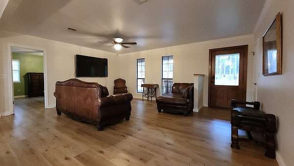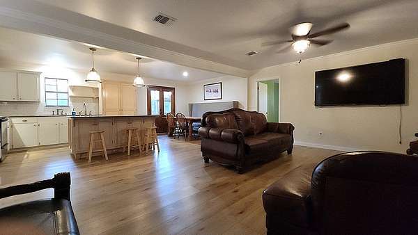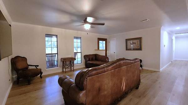 This is quite the show place with lots of extras! The property includes a 4br/2ba, 1800sf, beautifully updated home with a separate,1br/1ba efficiency apartment/MIL suite on almost 8 secluded acres. Paver steps lead to a welcoming front porch that spans the front of the house. It has a split bedroom arrangement with an open kitchen & living area. The kitchen features two tone cabinetry with quartz countertops & a large island. An armoire type built-in pantry offers lots of storage, functionality & style. Enjoy the views from the big bay window of the master suite. There's plenty of room for oversized furniture & a sitting area too. You can bathe in the soaker tub or the custom walk-in shower with seamless glass & modern tile. The large, partially covered deck off the back is perfect for outdoor living. There's even an established gardening area & cute living space for the chickens! The separate apartment would make a great man cave or game room. Located < 5 min. from the loop.