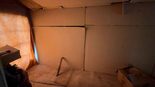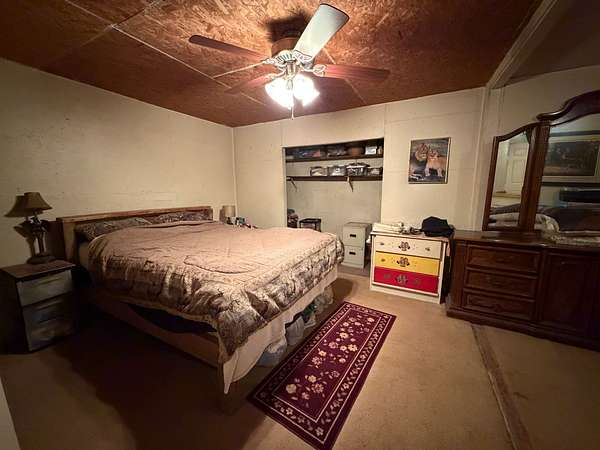 A 12x12 bedroom with an attached 6x8 sitting area. Upstairs is a 35-foot loft half-room providing additional flexible space along with a 12x11 storage area. Wood plank flooring is located beneath the carpet in the den area.