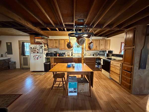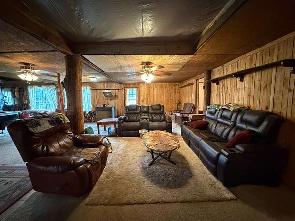Utilities include septic, with electric available at the pole and water connected from the mother-in-law suite line. The property offers space, river access, and a quiet setting in the Crossville area.