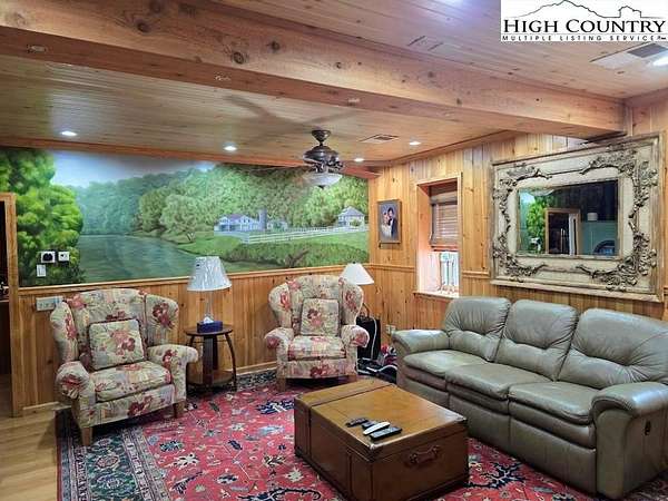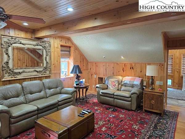 Nestled along the scenic South Fork New River, this extraordinary property offers a rare blend of rustic charm and modern luxury. Originally built in 1921 and fully renovated in 2007, the home features a lovely, full log cabin seamlessly connected to a beautifully remodeled barn via an enclosed walkway. Inside, you'll find thoughtful upgrades throughout, including a residential elevator from the basement to the second floor and a freight elevator to the main level. The basement level includes a fully equipped apartment with its own kitchen, laundry, and private entrance--perfect for guests, rental income, or multi-generational living. This apartment was professionally restored after flooding during Hurricane Helene, and the owner carries flood insurance for added peace of mind.