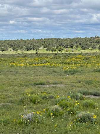 Vegetation is primarily open grassland with blue grama and Arizona fescue, mixed with scattered pinon-juniper, pockets of ponderosa pine, and occasional alligator juniper. The open meadow character is a defining feature of the property, providing long sight lines, simple access across the ranch, and excellent habitat for wildlife.