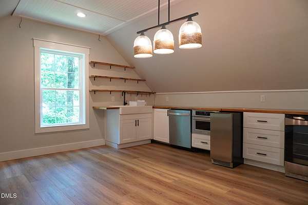 Private Retreat Just Minutes from Downtown Pittsboro - Space, Style & Versatility on 1.55 Acres Welcome to a truly exceptional rental opportunity nestled on 1.55 private acres just minutes from the heart of Downtown Pittsboro. This beautifully maintained 3-bedroom, 3-bath home offers 2,710 square feet of thoughtfully designed living space, perfect for those who value privacy, flexibility, and room to breathe. From the moment you step inside, you'll appreciate the bright, open-concept layout, soaring ceilings, and durable flooring throughout, designed for both everyday comfort and effortless entertaining. The spacious main-level primary suite provides a peaceful retreat, complete with a generous walk-in shower and ample closet space. Upstairs, the home truly shines with a fully equipped bar and second kitchen, creating the ultimate bonus living space, ideal for hosting gatherings, creating a private guest suite, or enjoying extended living flexibility. Built-in features, custom workstations, and unique storage solutions add character and functionality rarely found in rental homes. Step outside and experience your own personal oasis. The expansive property features beautifully curated landscaping with seasonal blooms, open green space, and a fenced area perfect for pets or outdoor enjoyment. A detached workshop with electricity offers the ideal space for hobbies, projects, or additional storage, making this property as practical as it is beautiful. Conveniently located just minutes from Highway 64, commuting is simple while still enjoying the peace and privacy of country living. Whether you're working remotely, entertaining guests, or simply enjoying quiet evenings under the Carolina sky, this home offers the lifestyle you've been looking for. This is not your typical rental; this is a place to truly live, relax, and thrive.