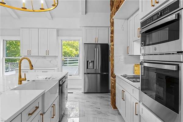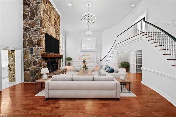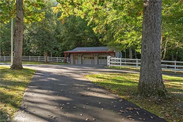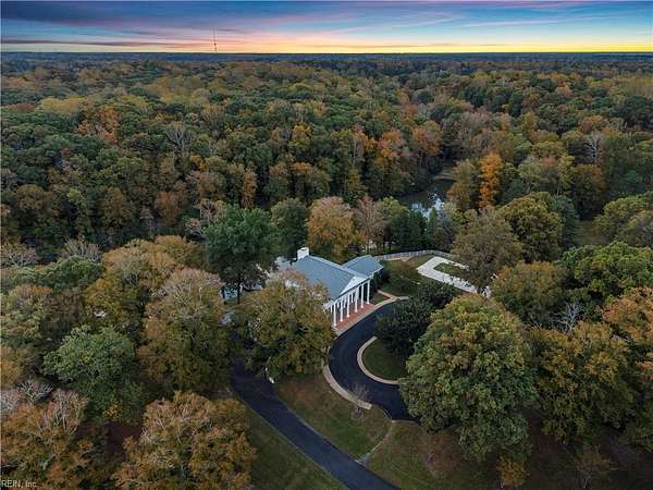 This well-known Williamsburg estate sits on 42 private, gated acres just 10 minutes from Colonial Williamsburg. A tree-lined entrance leads to a stately all-brick, three-story residence with freshly painted white exterior and a roof only 2 years old. Inside, new hardwood floors flow throughout the main level, and the custom kitchen features porcelain tile flooring, Silestone countertops, stainless steel appliances, and an expansive island filled with natural light. The first-floor primary suite offers a private entrance, dual bathrooms, and a Roman soaking tub. Enjoy a home theater, gym, and a third-floor bonus room with fireplace, wet bar, and half bath. Outdoor living includes a large patio and gazebo overlooking a stocked 6-acre pond, a 3-stall horse barn, pickleball/tennis court, and trails for horseback riding. A 2-car attached garage, 2-car detached garage, and 2-bedroom guest home complete this rare Williamsburg retreat.