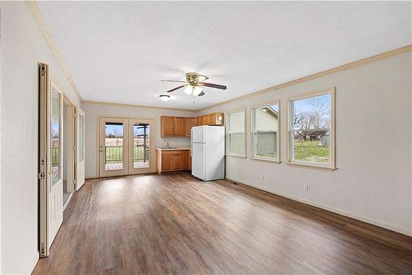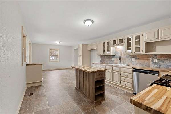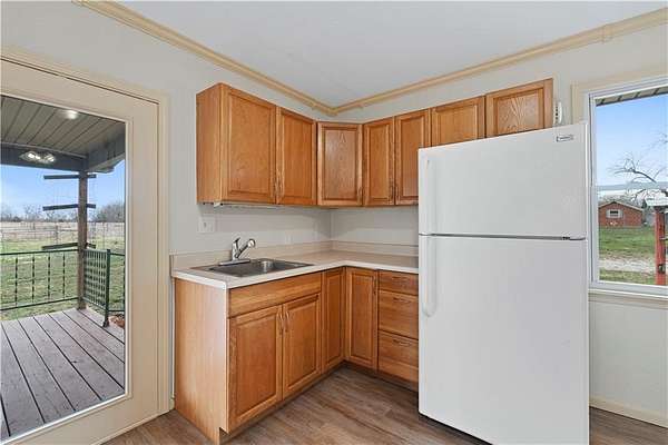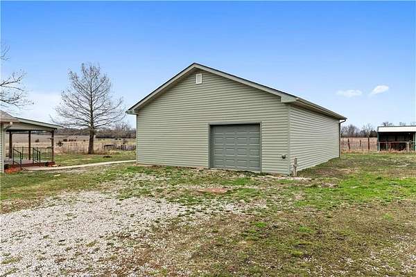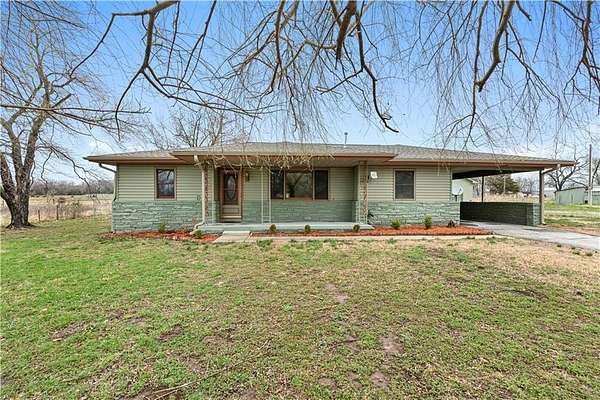 Beautifully remodeled country home on 15+/- acres offering the perfect blend of modern updates and rural living. This 3 bedroom, 2 bath home features numerous upgrades including new flooring, fresh paint, new roof, vinyl siding, and stainless appliances. The kitchen stands out with butcher block countertops and a stylish tile backsplash. The home offers both a formal living room and a spacious family room, providing flexible living and entertaining space. Refurbished wood floors add character, while the large primary suite with private on-suite bath offers comfort and privacy. Custom tile work in the laundry area adds another nice touch. Outdoor amenities make this property especially appealing with a covered porch, deck, and approximately 15.5 acres of cattle-tight fenced pasture, ideal for livestock, hobby farming, or simply enjoying the space. A 30x40 shop with tall ceilings and matching vinyl siding provides excellent space for projects, equipment, or storage. Additional features include a carport with storage closet, along with a chicken shed and traditional root cellar that offer great potential for restoration and use. If you're looking for updated country living with acreage, shop space, and room to grow, this property is definitely worth a look