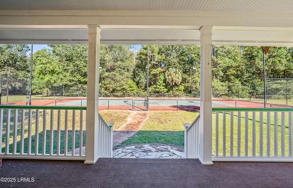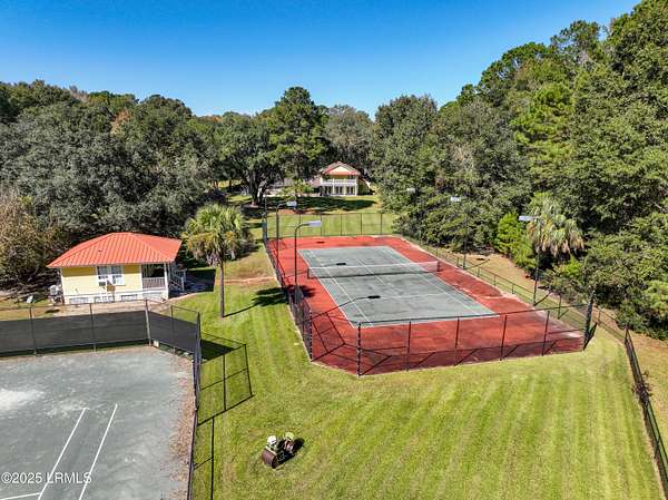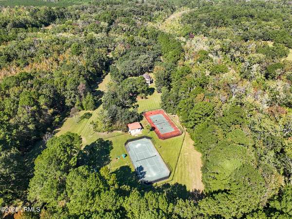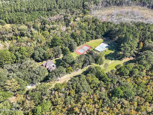 Nestled on a serene estate with a gated private entrance and a grand circular driveway lined by gorgeous mature trees, this exquisite property offers unparalleled luxury and recreation. The main house boasts 3 bedrooms downstairs-including a primary suite with bonus room, 2 fireplaces, a movie theater room, screened porch with 3 bedrooms and 2 full bathrooms upstairs, complemented by charming balconies. Step outside to two premier tennis courts: one clay court and one hard court convertible to pickleball. A separate detached studio provides versatile space, while the inviting guest house features a kitchenette, full bathroom, and expansive porch overlooking the courts. Adjacent 35 acres also available for sale-your dream compound awaits!