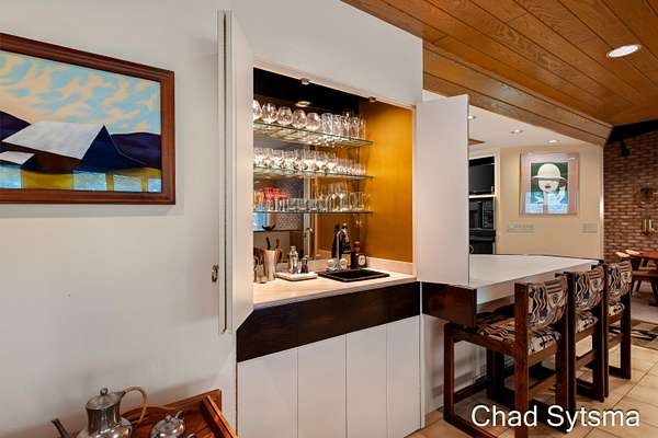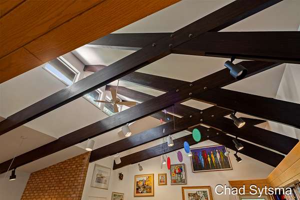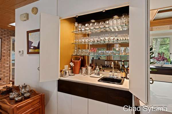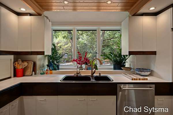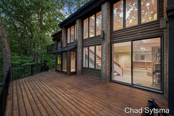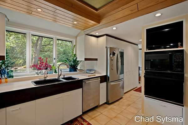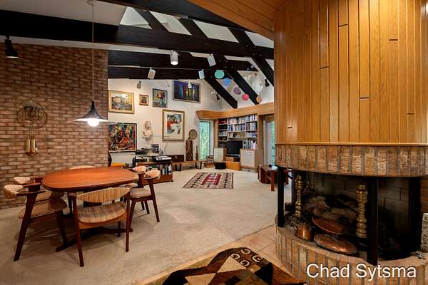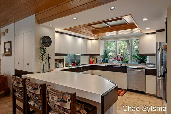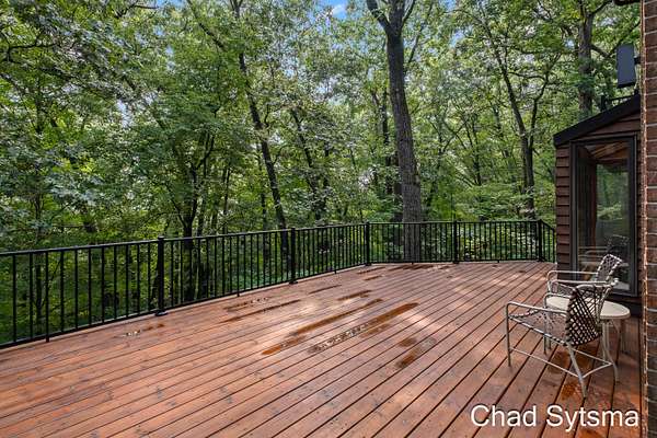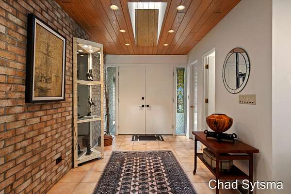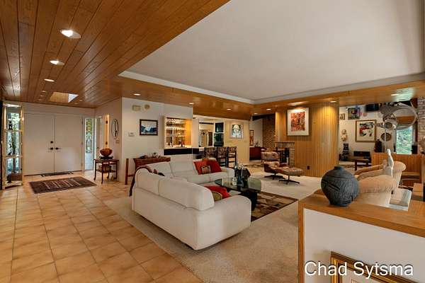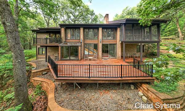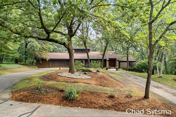 Design intent, sightlines and a spectacular natural setting come together in this rare Forest Hills property. Built to a high architectural standard, this singular home was custom designed to showcase the owner's art collection and furniture. The result is a livable gallery with curated lighting, exquisite woodwork and curvilinear architectural elements. Perched on a ridge in the treetops, the residence celebrates Frank Lloyd Wright both inside and out. Adding to its allure, the 11-acre property directly abuts a forest preserve with walking trails, extending your backyard into miles of natural beauty. This superbly maintained home balances comfort for everyday living with refined spaces for entertaining. Flexible floorplan, thoughtful sightlines and superb craftsmanship make it as practical as it is inspiring. This is a rare sanctuary in a sublime location, minutes from shopping, dining and downtown Grand Rapids.