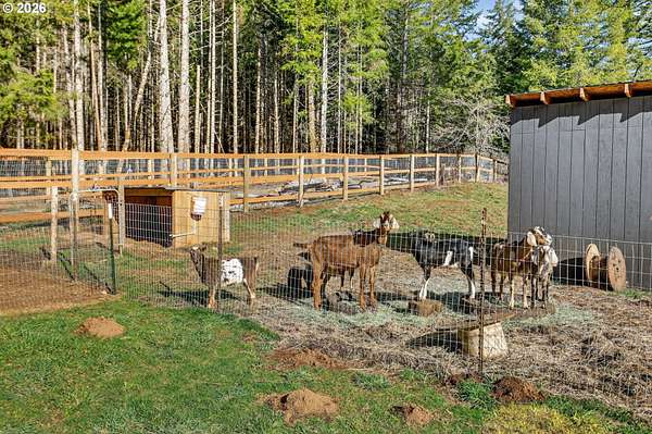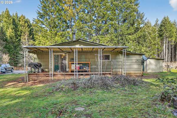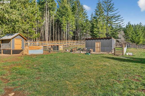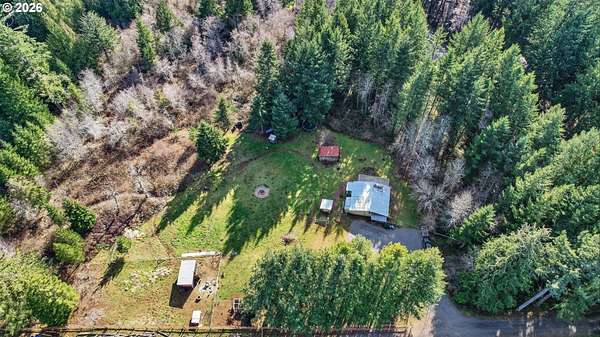 4.69 Usable Acres - 2 Bed - 1 Bath - Hobby Farm Ready. Perfect for those who love to explore and need space to care for livestock. Situated on 4.69 usable acres, this quaint one-story home offers 2 bedrooms and 1 bath with a cozy, open kitchen and living area.Unwind on the covered deck while listening to nature at the end of a long day or enjoy the splendor of the morning light. A enchanting treehouse provides elevated views of the surroundings and open spaces.The outdoors offers a beautiful blend of hobby farm functionality and wooded trails for exploring. The property is fenced on three sides with cross-fencing for livestock. A newer outbuilding includes goat pens, a chicken coop and yard, with room to expand.Plenty of space for parking, a future shop, or additional outbuildings, ideal for building long-term value. The home is comfortable and cozy as-is, with potential to enlarge, rebuild, or replace if desired.Wired for generator hookup included for added peace of mind and support for a more self-sufficient lifestyle.If you're looking to homestead, raise animals, garden or simply slow things down? This cozy one-level home on 4.69 acres with room to roam, grow, and create the life you've been dreaming about is the ONE!