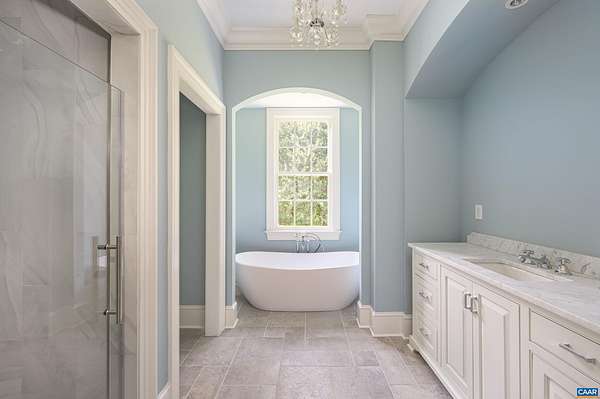 An Architecturally Distinguished Albemarle Estate. Nestled among rolling history hills, vineries, and protected countryside, this exceptional French Provencal-style estate spans 133.8 private acres and is introduced by a gated entrance that sets the tone for quiet grandeur. Comprising eight adjoining parcels, the property presents an extraordinary opportunity for a conservation easement, enhanced by thoughtfully crafted trails that wind through the landscape, ideal for recreation, and preservation. The stunning residence is both elegant and welcoming, offering a floor plan suited for formal entertaining and relaxed daily living. Highlights include five en-suite bedrooms, an expansive first-floor primary suite, and four wood-burning fireplaces that add warmth and character throughout, the beautifully appointed kitchen flows seamlessly into the dining room, living spaces, library, and outdoor areas--creating a natural harmony between interior and exterior living. A three-car detached garage complements the estate. Ideally located just minutes from Jefferson's Monticello, Monroe's Highlands, Morven, and other esteemed Albemarle estates, this rare offering is also only 20 min to the vibrant downtown of Charlottesville