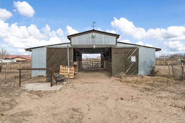 This spacious 4 bed, 3 bath home nestled on 1.65 acres in the heart of the south valley offers comfort and functionality! Recent updates include new roof, Master Cool Evaporative Cooler, updated electrical wiring and box, and new shower in 2nd on suite bedroom (all in Dec 23). Living area features gorgeous wood ceilings w/brick flooring and custom fireplace. Finished sunroom is 231 sq ft (not included in sq ft) This property also features a 5 stall barn and horse corrals on private well plus 2 irrigation wells for all your agricultural needs. This home combines rural charm with modern convenience, offering plenty of privacy while keeping you close to local amenities. A rare find with exceptional potential! This south valley gem is ready to welcome its next owner!