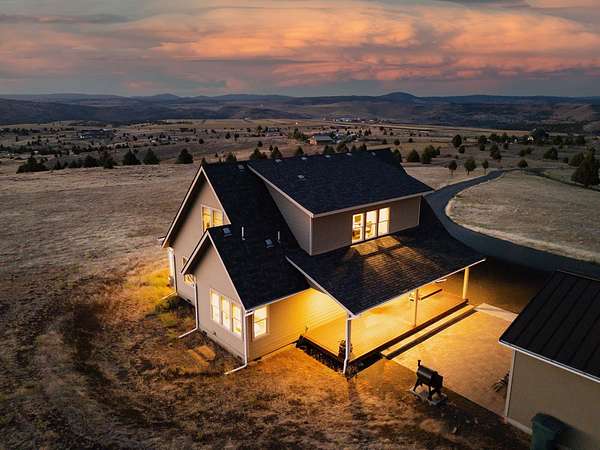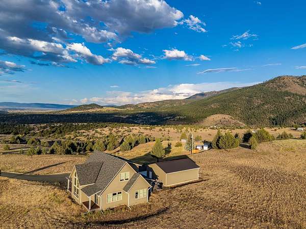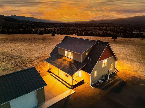 Experience peaceful living on 40 acres above John Day with sweeping 360 degrees views from this beautifully crafted 3 bed, 3 bath, 2,259 sq ft custom home. Built in 2018 with high-end finishes throughout. The home showcases vaulted/ 9' ceilings, striking floor to ceiling windows, & solid oak flooring. Spacious main level features gourmet kitchen w/granite counters, Lg prep Island, eating bar, pantry, & walnut cabinetry. The primary suite includes a walk-in closet, claw foot tub, & walk-in shower. Also on main floor: second bedroom, additional bath, laundry room, & access to a covered Trex deck & paver patio-perfect for entertaining. Upstairs offers a large loft/office, third bedroom, full bath, bonus storage & a sleeping/play area tucked in the stairway. Property includes a finished insulated & heated 26x36 shop, private well, minimal animal setup, partial fencing. Potential second home site adds future flexibility. A blend of luxury, privacy, and scenic beauty!