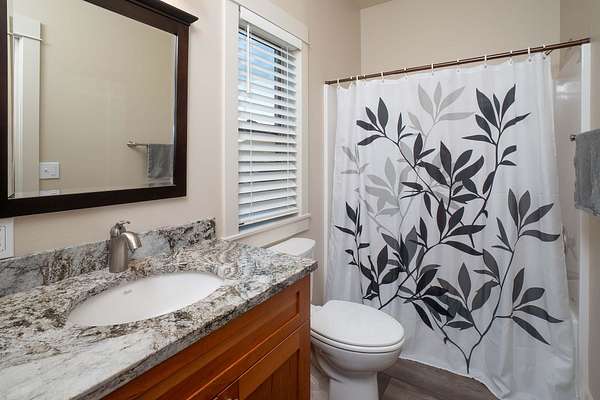 - Double Vanity, Fiberglass Stall Shower, Granite Counters, Open Floorplan, Primary Downstairs, Shower/Tub Combo, Vaulted Ceiling(s), Walk-In Closet(s)