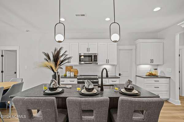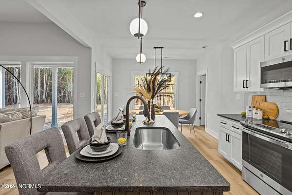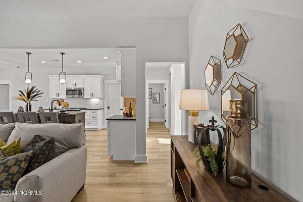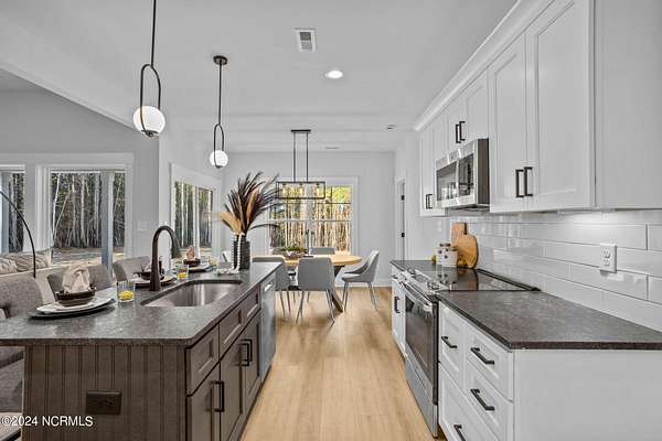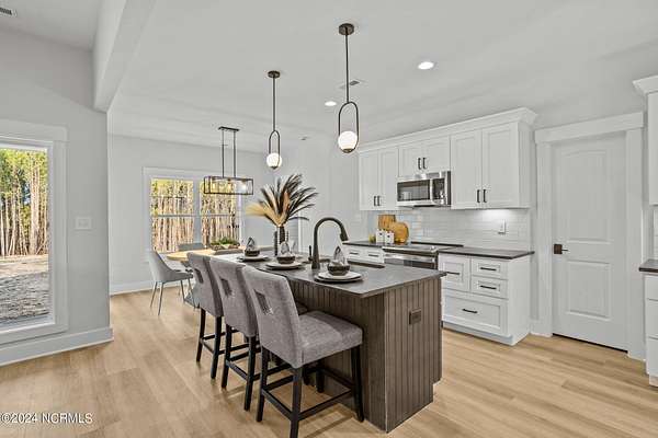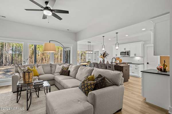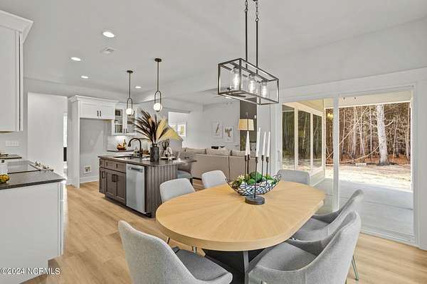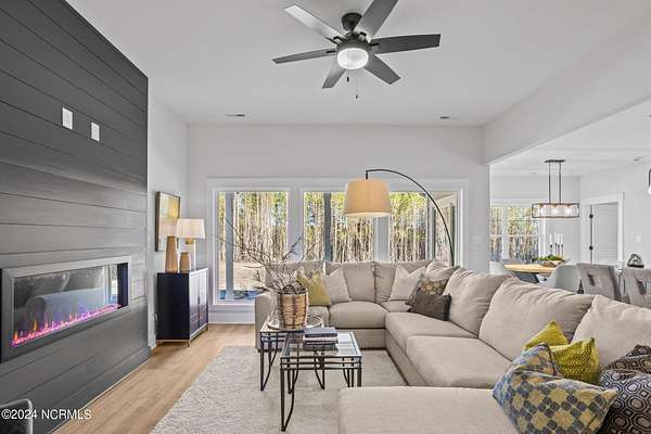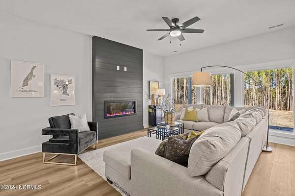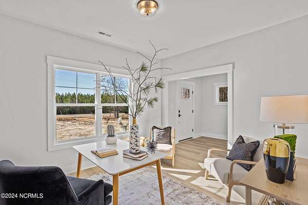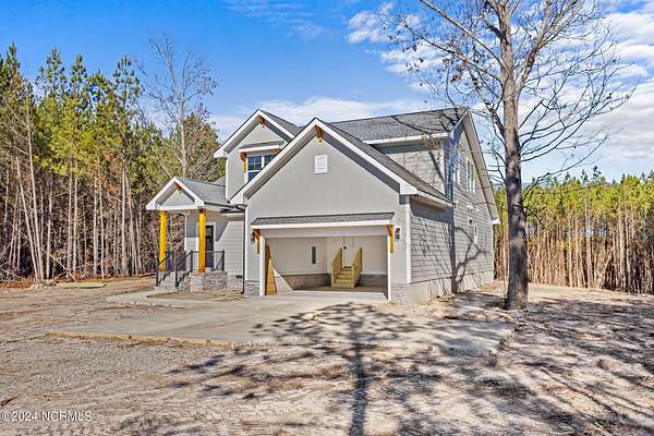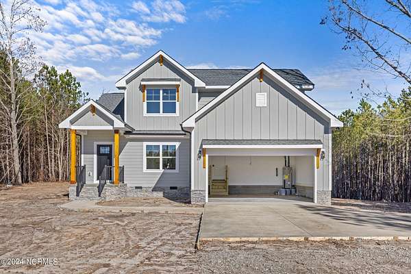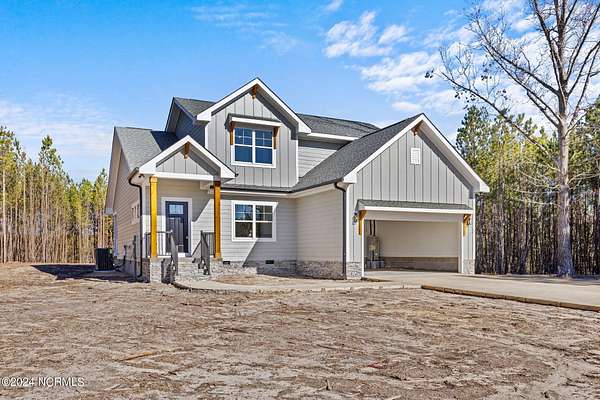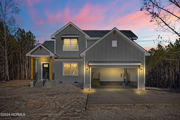 Custom new construction in Eagle Springs brought to you by Wolfe Development & Construction. Nestled back off the road, this home offers an abundance of privacy w/ a serene setting. Boasting 2100+ sq ft of living space, this home sits on an impressive 1.87-acre lot, providing ample space for all your needs. With no restrictions or HOA, you have the freedom to make this property truly your own. 3 bdrms, 2.5 ba, a versatile flex room & bonus room that could serve as a 4th bdrm or any other desired space. Open concept design creates a seamless flow throughout the home. The primary suite & flex room are conveniently located on the main level, providing easy access & privacy. Living room showcases an electric fireplace and impressive large windows that offer breathtaking views of the backyard surrounded by majestic pines.The expansive kitchen is a dream, complete w/ plenty of cabinets, SS appliances, coffee bar area, island w/ storage, a sink, & an eat-at area. The primary suite is a true retreat w/ trey ceilings, bathroom offers double vanity, tons of cabinets, walk-in tile shower, & custom walk-in closet. 2 bdrms, full bath & a bonus round out the upstairs & every room w/ incredible views. Other features, a unique 3 window design in foyer bringing in more light & making space feel even more open & inviting. Exterior of home showcases stunning wood accents, adding to its overall charm & appeal. Step outside onto the covered back patio, where you can sip a cup of coffee & revel in the peace & tranquility of country living. This property truly offers the best & within 20 min of Pinehurst, 35 min from Asheboro & 50 min from GSBO. Schedule a showing today & experience the unmatched beauty & luxury it has to offer!