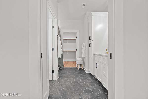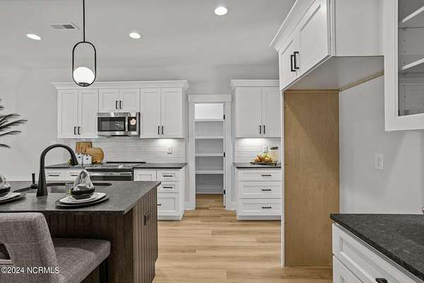 - Ceiling Fan(s), Entrance Foyer, High Ceilings, Kitchen Island, Master Downstairs, Pantry, Solid Surface, Tray Ceiling(s), Walk-In Closet(s)