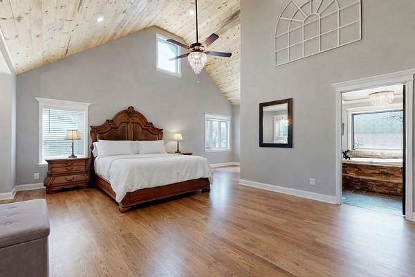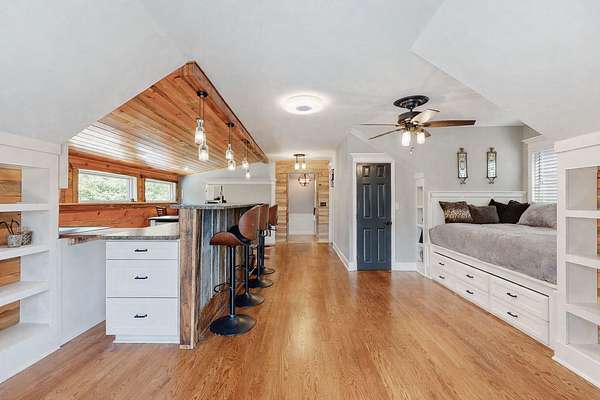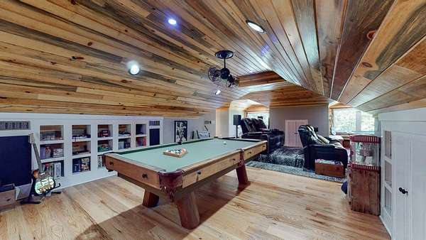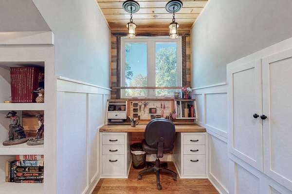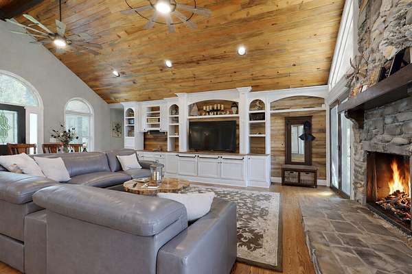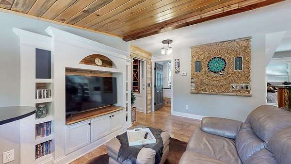 Designed for both everyday living and entertaining, the home offers warm, curated interiors with wood-planked ceilings, abundant character, and a flexible main-level room ideal for a fourth bedroom or office. The primary suite is a true retreat with an expanded layout and a spa-like bath featuring heated slate floors, dual-head shower, and upscale finishes.