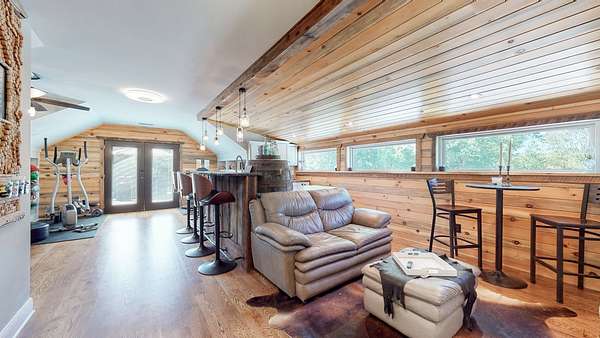 The custom barn, built in 2019, is framed like a home and includes four enclosed stalls with room to add two more, tack room or office, feed room, water, and expandable electrical capacity. An unfinished upper level with dormers, French doors, balcony, and separate entrance offers outstanding future apartment or flex-space potential. Additional upgrades include a replaced roof, underground drainage improvements, enhanced exterior lighting, and a renovated garage with epoxy floors, cabinetry, sink, and storage. A rare opportunity for elevated rural living with luxury, versatility, and usable land.