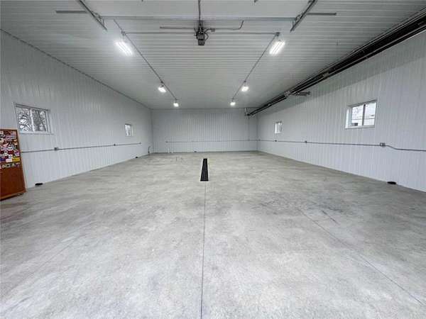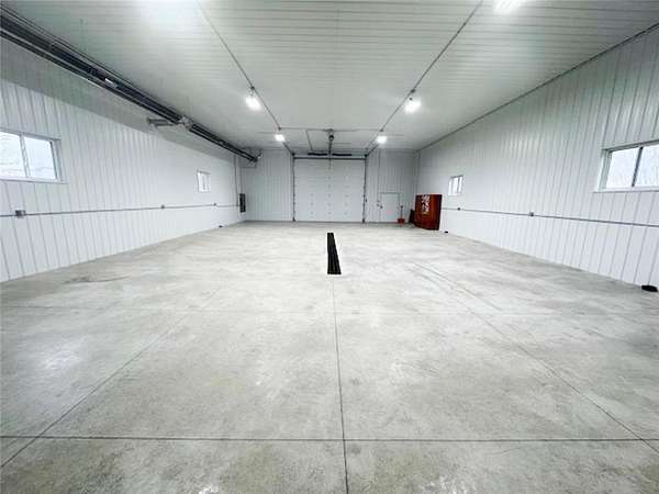 Discover the convenience and possibilities of this 1.22 acre lot featuring a high quality 42' x 64' Lester building, designed for exceptional storage, hobby use, or future workspace needs. Fully finished inside, the building offers 200 amp service, outlets along the entire perimeter, bright LED lighting (interior and exterior), and an efficient infrared propane tube heater that warms the space quickly. A wide, extra tall overhead door with an automatic opener makes it ideal for RVs, trailers, and larger equipment, while a long center trench drain in the poured concrete floor allows snowmelt and water to exit easily. The surrounding poured concrete skirt helps keep weeds and pests away, and the large concrete driveway and apron offer plenty of room for parking and maneuvering. Additional features include elevated windows for natural light and increased security, and roughed-in plumbing in the back left corner for a future bathroom. Piping and drainage are already installed below the slab and exit the building. This property has great location and proximity to Highway 43 and I90, is close to snowmobile trails, and could also have potential storage rental opportunities.