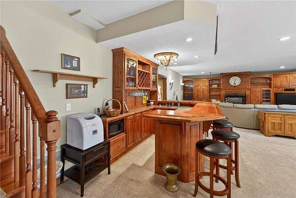A highlight of the home is the expansive four-season porch, complete with a mini-split system for year-round comfort and built-in storage. The lower level is an entertainer’s paradise, featuring a large great room with a wet bar, gas fireplace, and ample space for a pool table and game area—ideal for hosting guests.