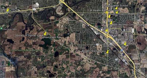 Welcome to Shores of Sylvan Lake, a lake lot development on Sylvan Lake in Rogers. These acreage lots were completed in November 2024, and only three are remaining. These lots are ready for your new home, you can bring your own builder or we can provide introductions! The neighborhood is adjacent to the 2,600 acre Crow-Hassan Park Reserve (a Three Rivers Park) that offers trails for walking, hiking, cross-country skiing, horseback riding, snowmobiling and more. Roger schools are in the top 4-8% of schools in the state (School Digger) and within 8 minutes of the lots. The development offers close proximity to amenities and is only 3 miles to downtown St. Michael or I-94, 10 minutes to Target, Cub, Park Nicollet Health, MHealth Fairview, and only 30 minutes to downtown Minneapolis.