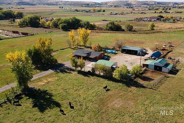 Beauty, peace and calm are waiting on this small farm. Over 12 acres of level, flood irrigated, fully fenced property for animals, chickens, gardening as well as room for your pets and toys. An artesian creek runs at the back of the property. The essentials are already in place with a Barn, Machinery Shed and a Shop/garage all within close proximity to Emmett, Schools and Outdoor Recreation. A paved driveway welcomes you home to a comfortable well maintained 3-bedroom, 2 bath home including stainless steel appliances in the kitchen, walk-in closets in all bedrooms and an extended porch to take advantage of the stunning views and watch the hummingbirds bombard your feeders. The property is located in an area where it is splitable.