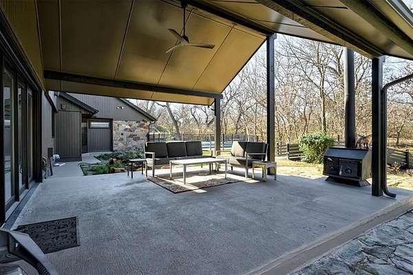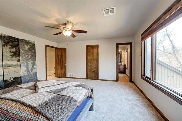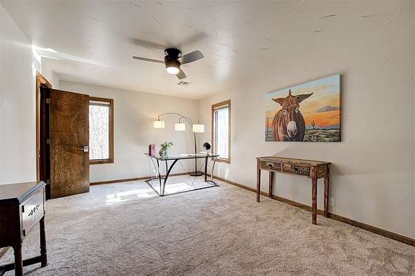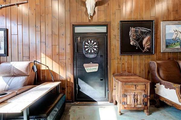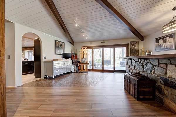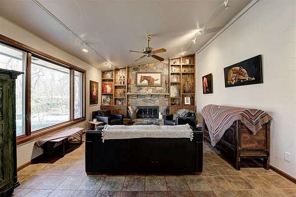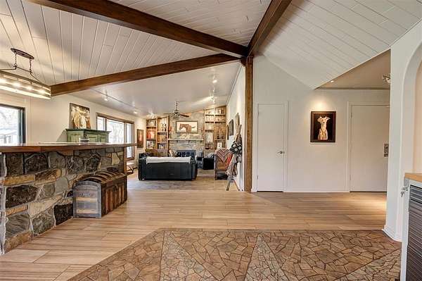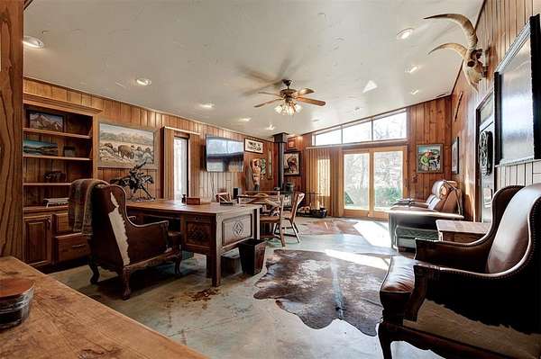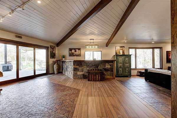 Welcome to this unique and beautifully updated property offering exceptional indoor and outdoor living. This spacious 4-bedroom, 3.5-bath home is filled with custom details, thoughtful design, and versatile spaces. The home offers a one of a kind office/flex space featuring a wood-burning fireplace, built-in shelving, a built-in fireproof safe, and cedar walls, making this space ideal for a home office, entertaining or a cozy evening by the fire! The sunken living room with its rock accent wall, fireplace, and built-in bookcases, open up to the dining room and full size bar equipped with a sink and space for a wine fridge and kegerator! The dining room is an entertainer's dream with glass doors that open to a spacious covered patio. Enjoy year-round gatherings with plenty of room for outdoor seating and a charming wood-burning stove. The chefs kitchen is truly special with custom cabinetry, pull-out shelving, a built-in lazy Susan, walk-in pantry, with additional storage under the staircase plus a custom-built pantry. Some high-end upgrades include a GE Cafe double oven with French doors on top, GE Cafe bottom-freezer refrigerator with ice-in-door and hot-water dispenser. Downstairs the primary suite feels like a retreat, with a spa-like bathroom featuring a steam bath and walk in shower. The sliding doors open directly to the pool area, while the flex room off the primary suite offers endless possibilities-use it as storage for pool essentials, a dressing room, or extra closet space. The other 3 beds and bathroom are located upstairs as well as lots of built in storage! This property offers two lots, mature trees, a custom built bridge leading to the adjoining lot, a greenhouse, raised garden beds, a chicken coop with a fenced run, a carport, wood shed and a beautiful pool with a waterfall feature and separate fence. Whether hosting gatherings, relaxing by the pool, gardening, or enjoying recreational activities, this property truly offers it all!