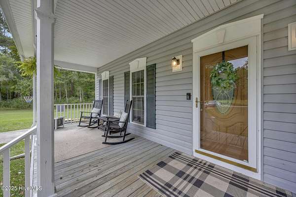 Don't miss your opportunity to view this 3 bedroom, 3 full-bath home located on over 4 acres of land just minutes from Lake Waccamaw. This move-in ready home offers 2,188 square feet of well laid out living space, a rocking chair front porch, a large screened in patio off the back of the home and an above ground pool. Additional exterior features include a small barn, chicken coup, shed, raised garden beds, and plenty of space for all your outdoor needs. The light filled home offers warm wood floors in the living room, first floor primary bedroom, stair treads, and upstairs hallway. Durable tile floors finish the remainder of the first floor and all bathrooms. The spacious kitchen offers wood cabinets, black appliances, a window overlooking the expansive backyard, and an adjacent dining area which naturally flows into the living space. Upstairs you will find two large bedrooms with walk-in closets and a full bathroom. This country retreat is located only 30 minutes to Leland, 40 minutes to Wilmington, and within an hour of Myrtle Beach and Brunswick County Beaches.