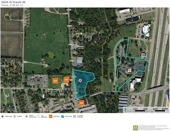 Where community, commerce, and convenience meet in Sherman. Positioned at the signalized intersection of North Travis Street and West Lamberth Road, this high-visibility VPD +-18,000 (Travis and Lamberth combined) parcel presents a premier development opportunity in the heart of Sherman, Texas. The 2.39-acre site (1.904 acres net usable) which pricing is based on is fully serviced with city utilities and located within a Qualified Opportunity Zone, offering exceptional long-term investment incentives. Strategically situated in a rapidly growing corridor surrounded by residential development, schools, and retail anchors, the property is ideally suited for a range of neighborhood-focused uses, including retail, QSR, boutique medical, and office-flex formats.