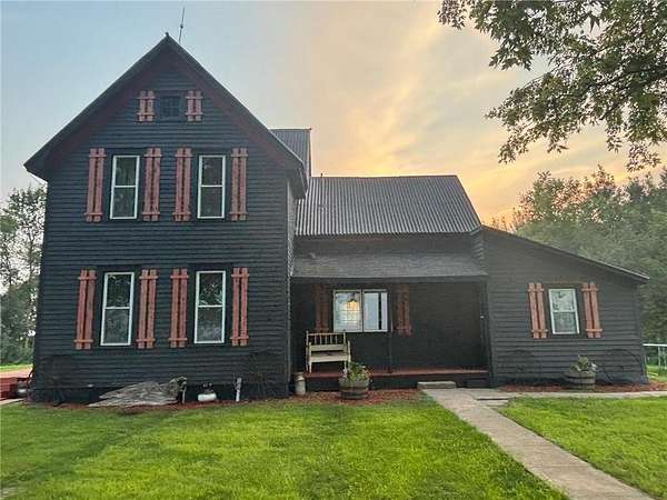 PRIVATE, RURAL, UPDATED AFFORDABLE 1890 GOTHIC VICTORIAN HOME ON 8.52 ACRES, clean and turnkey ready. Offers a rural secluded setting, yet just minutes from the public school. The property has a new septic system completed in 2024. The water well is clean and abundant. There is a newer LP furnace installed in 2022. There is new pex plumbing throughout the home. The electricity has been updated inside & out. The windows were updated with aluminum frame and tip inward for easy cleaning. It has a newer water heater. There is a woodburning stove for secondary heat if a buyer choses to use. The exterior was recently painting, complimented with handcrafted cedar shutters. New vintage style light fixtures were installed throughout the home. There is a baker's kitchen with ample cabinets. There are original hardwood floors & woodwork throughout most of the home. The appliances are less than 2 years old. There is a nearby waterfowl reserve, and the property is just minutes away from fishing, hunting, and endless water recreation. There are 2 nearly new quality built outbuildings: a 10X12 storage building and a 12X16 custom designed mini livestock building. There is a new fenced in rotational pasture. There is a Bee Pollinator Plot for you to harvest your own honey. The driveway was resurfaced with gravel 2025. Property was recently surveyed and corner boundaries are marked. The septic system cost was added as a loan assessment to the property taxes. The loan balance may be paid off by seller at closing with a full price offer. Call for a showing today!