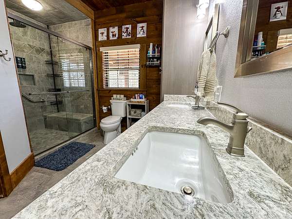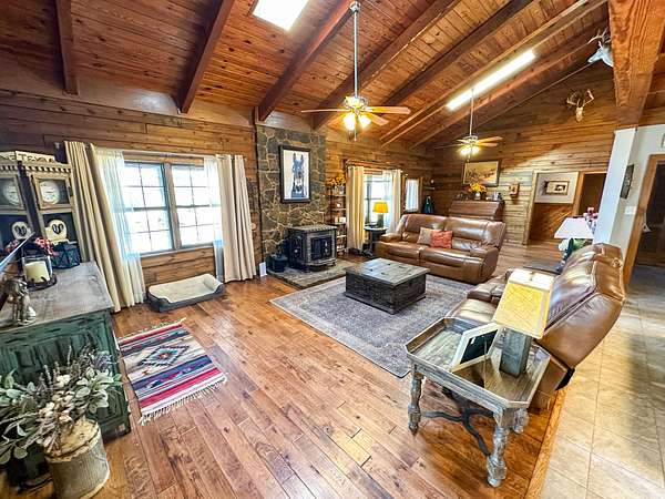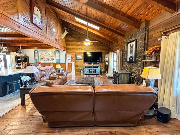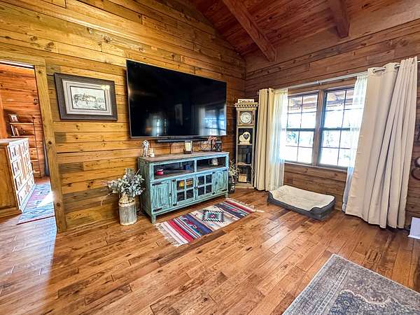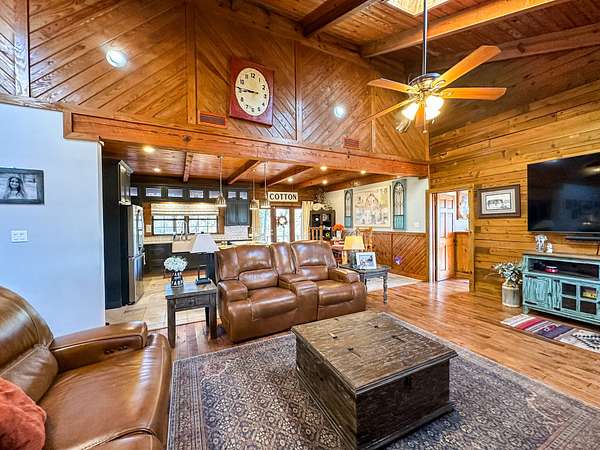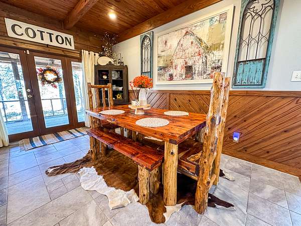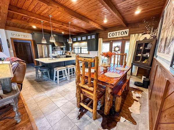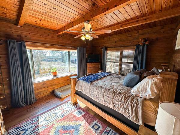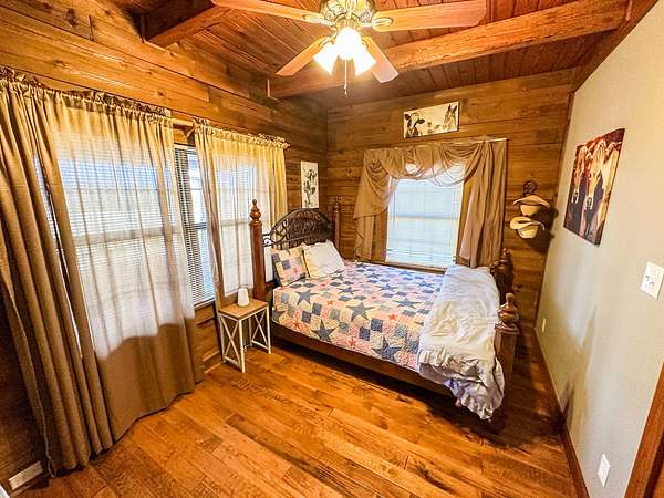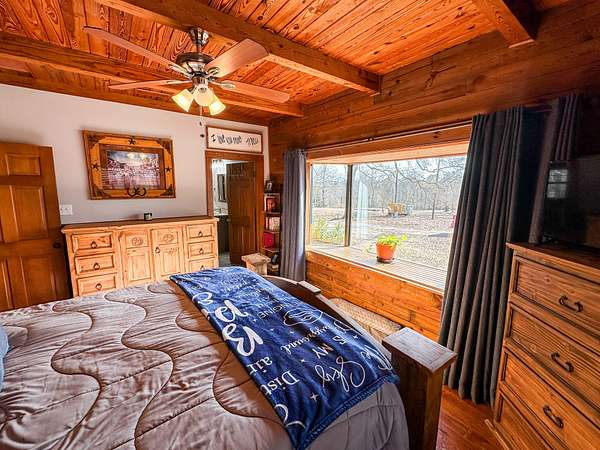 PRICE REDUCED!! Located in the heart of Northeast Texas, Pine Oak Ranch offers nearly 100 acres of stunning countryside just south of Marietta in Cass County! As you pass through a newly installed cast-iron electric gate, a breathtaking log home welcomes you, accompanied by a guest space and wellness retreat and a massive workshop - all situated among open pastures and mixed timber, offering endless recreational opportunities. The 3-bedroom, 2-bathroom main (1,800 sf) home exudes warmth and elegance with its open floor plan, vaulted ceilings, hand-scraped hickory wood floors, and a Hearthstone wood-burning stove. The kitchen is a chef's dream, featuring a 6-burner gas stove, granite countertops, a spacious center island, and rich natural woodwork. The master suite is truly stunning, boasting large windows and a spa-like bathroom. A separate guest space and wellness retreat (1,904 sf) includes a bedroom, bathroom, gym, and a spa equipped with a sauna, steam shower, and hot tub. An attached two-car garage with HVAC adds versatility. Nearby, a 3,680 sq. ft. workshop with three storage areas and overhead doors provides ample space for equipment or recreational gear. The property also features a newly constructed pond, a seasonal creek, a chicken coop, a fenced 2 acre cattle pen, and a greenhouse. Outdoorsmen will appreciate the multiple trails, blinds, tree stands, and feeders that attract deer, hogs, and more. When it comes to country living, Pine Oak Ranch truly has it all! The property boasts 0.31 miles of paved road frontage on County Road 2621 and is conveniently located just 3.3 miles from Marietta, 44 miles from Texarkana, 54 miles from Longview, and 153 miles from Dallas. With an acceptable offer the following items are included: 65-kw diesel generator, Massey Ferguson MF 1652 4 WD Tractor with 5 ft front end loader, Bush Hog, and Disc implement. Don't miss your chance to own the incredible Pine Oak Ranch! For more information or to schedule a private showing, contact Joe Marzahl at (469) 596-9016 .