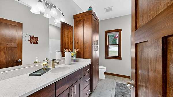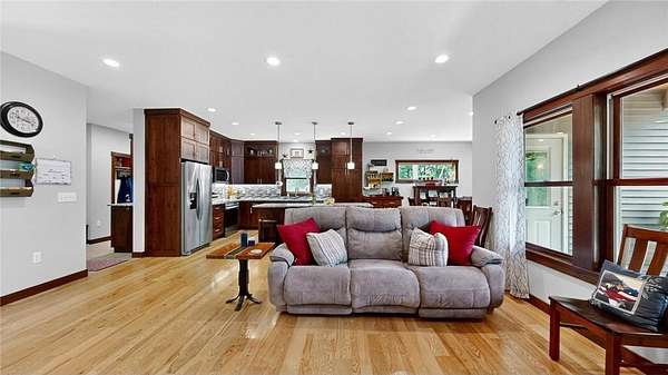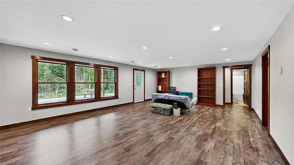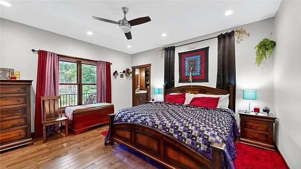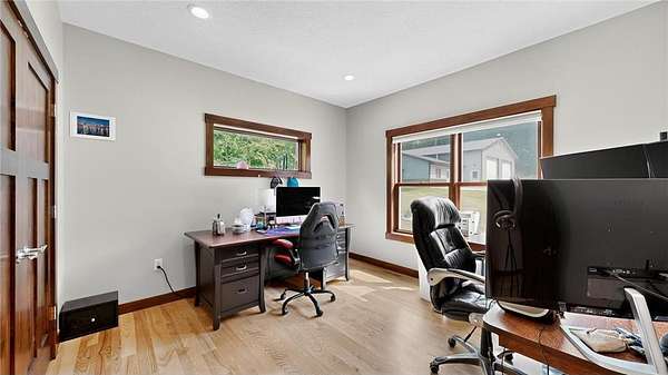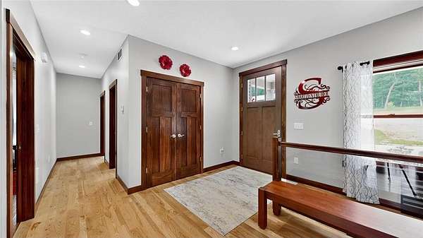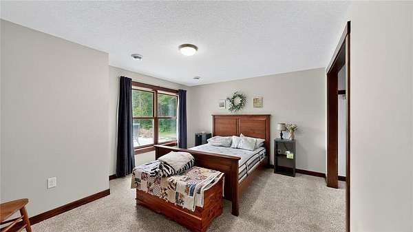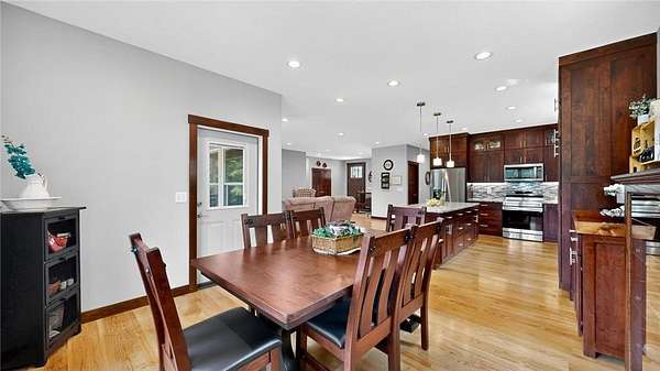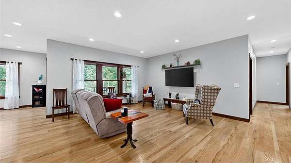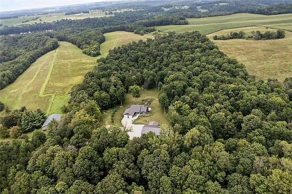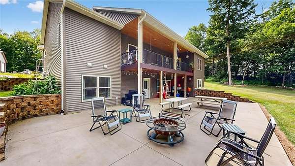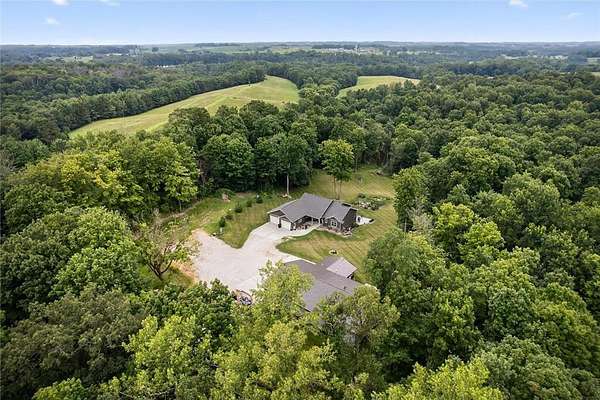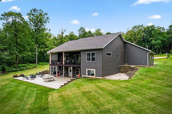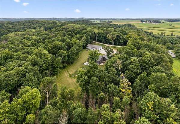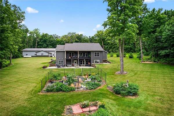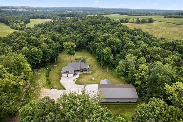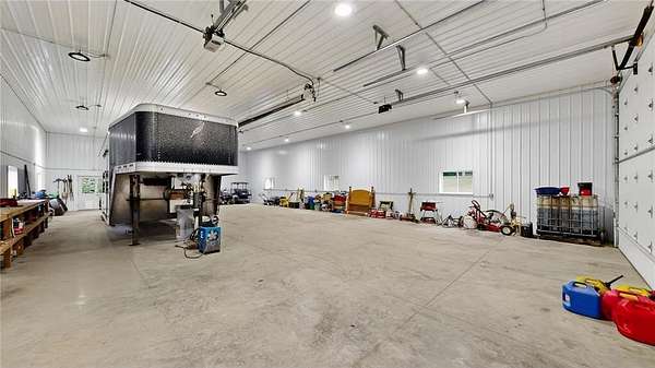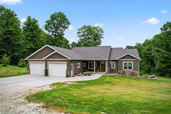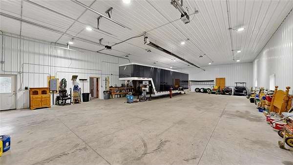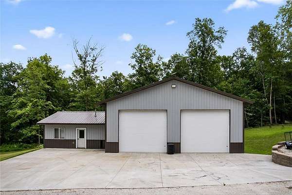 Private hunting retreat on 10 wooded acres with custom home, heated shop & mancave! Tucked away on a dead-end road just off the hard surface, this 2018 quality-built home offers privacy, comfort, and exceptional craftsmanship on a secluded acreage. The spacious open-concept layout features 3 bedrooms, 3 full baths, main-floor living, 9' ceilings, 3' paneled doors, stunning ash/hickory wood floors, quartz countertops, and custom cherry cabinetry. Enjoy the outdoors from your covered, maintenance-free deck or relax on the expansive concrete patio surrounded by scenic woodland views. The oversized 992 sq. ft. finished garage is fully equipped with a poly floor, heat, water, and floor drain--perfect for projects or extra storage. A standout feature is the 40' x 72' heated shed with a finished metal interior, radiant heat, concrete floor, floor drain, and 14' doors--ideal for storing equipment or pursuing hobbies. Attached to the shed is a 24' x 24' fully finished mancave with a mini-split, kitchen, living space, and 3/4 bath, offering the ultimate retreat or guest quarters. This is the perfect blend of seclusion, functionality, and high-end finishes--an opportunity you won't want to miss.