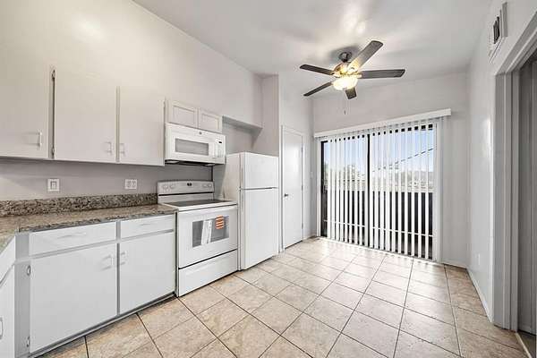 Step inside to an open-concept layout featuring a spacious living and dining area filled with natural light. The home showcases a blend of ceramic tile and carpet flooring, creating both style and comfort. The updated kitchen and bathroom add modern appeal, while fresh interior paint enhances the clean, move-in-ready feel.