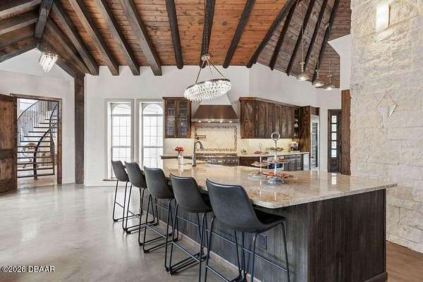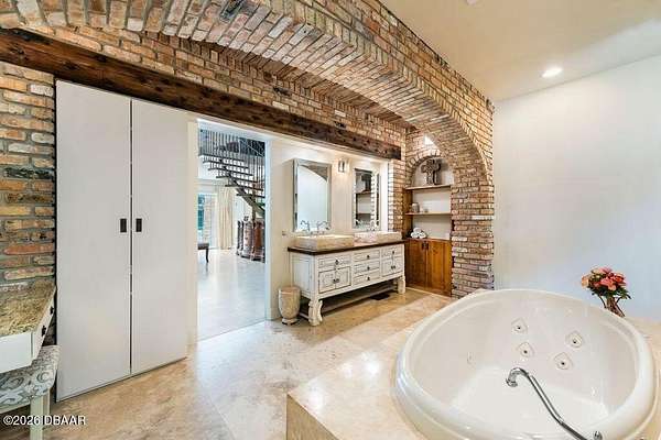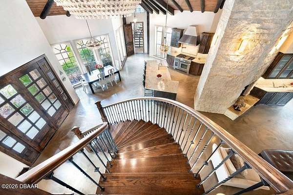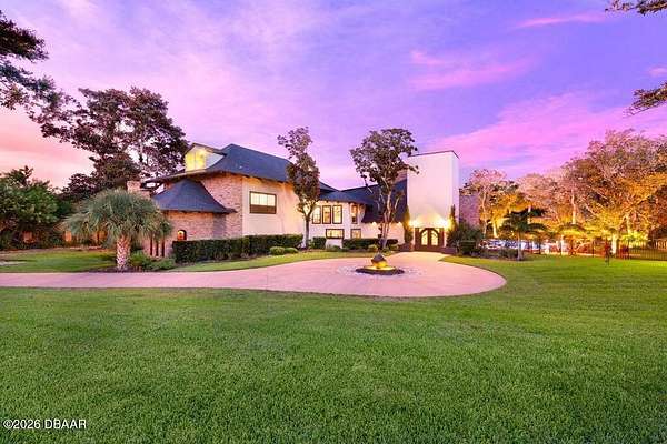 SPECTACULAR RIVERFRONT PRIVATE RESORT LIVING Welcome to an extraordinary estate where history, architectural artistry, and breathtaking natural beauty converge. Perched atop a rare natural dune with sweeping, pristine views of the Tomoka Basin, the Intracoastal Waterway, and the river beyond, this one-of-a-kind residence offers an unrivaled blend of privacy, prestige, and Old Florida charm. This remarkable property traces its roots to the historic Santa Lucia Plantation and was originally selected for its idyllic setting by John Anderson himself. The estate's architect fittingly christened the residence ''The Mona Lisa,'' recognizing it as a true masterpiece of design and craftsmanship. The vision was brought to life by a world-renowned sea captain whose passion for durability and beauty inspired a fortress-like construction rarely seen in residential architecture. Built with millions of dollars' worth of reinforced concrete construction creating a GRAND Estate with endle Spanning multiple parcels, the property offers extraordinary space and flexibility, including a buildable 200' x 60' Intracoastal waterfront lot and the primary homesite measuring 340' x 199', all positioned to capture breathtaking water views and spectacular sunsets. Whether enjoying peaceful mornings overlooking the Tomoka Basin or embarking on boating adventures from your private dock, life here feels like a permanent vacation. The Main Residence The impressive three-story main home features expansive living spaces designed for both grand entertaining and comfortable everyday living. Highlights include: " A dramatic two-story primary suite with dual spa-inspired bathrooms " Three additional bedrooms with en-suite baths " Five additional flexible spaces ideal for offices, lounges, guest quarters, or creative studios " An attached four-car garage Guest House & Additional Structures The charming two-story cottage offers exceptional versatility and privacy. It features a bedroom or living area downstairs, two bathrooms, a kitchenette, and a spacious bonus room with remarkable acoustics--perfect for a music studio, art space, or additional apartment. The property also includes a 50' x 20' RV garage that could easily be converted into additional living quarters or a luxury hobby space. With its own private patio and generous grounds, the guest house is ideal for extended family, in-laws, or vacation rental potential. There is even ample room to add a pickleball or tennis court. A third structure provides another oversized garage with 12-foot ceilings, workshop space, and room for two vehicles--or the opportunity to install auto lifts for a collector's dream garage. Outdoor Resort-Style Living The grounds are nothing short of spectacular. Step outside to your private outdoor oasis featuring: " A resort-style heated saltwater pool " Expansive travertine patio and pool deck ideal for entertaining " A striking gas fire wall feature creating the perfect setting for sunset gatherings " A fully equipped summer kitchen with a brand-new gas grill Imagine returning from a day on the water, docking your boat at your private dock, grilling the day's catch, and relaxing poolside as the sun sets over the river. The meticulously landscaped grounds offer mature trees, shaded hammocks, and winding paths that create the feeling of having your own private waterfront park. A circular drive welcomes guests in grand style, while expansive rear parking easily accommodates dozens of vehicles. A separate entrance office adjacent to the garage provides an ideal professional space for meeting clients while keeping work distinct from your private residence. Chef's Kitchen The heart of the home is a stunning chef's kitchen designed for both culinary creativity and entertaining. Anchored by a dramatic 25-foot freestanding Austin limestone gas fireplace, the kitchen features: " Thermador 6-burner gas range " Built-in Thermador refrigerator/freezer "Thermador Wine refrigerator and commercial i