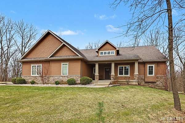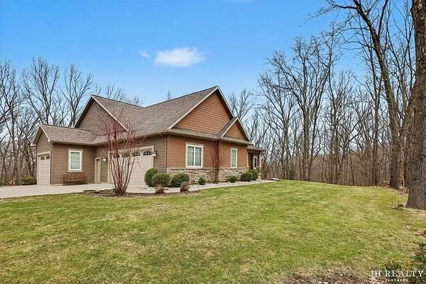 Luxury meets privacy on 11 acres at 2627 Oak Highland Ct. This stunning custom home located in the highly sought after, prestigious Oak Hill Estates, features soaring cathedral ceilings in the living room, 9-ft main level ceilings, and a finished walkout basement with 10-ft ceilings, a kitchenette, and garage access from the lower level. The primary suite boasts heated bathroom floors and a spacious walk-in closet. Four large bedrooms, three full and one half bath, plus built-in mudroom lockers, provide comfort and functionality. Entertain or work from the fully insulated, finished three-stall garage. Thoughtful design, open living spaces, and scenic acreage make this home perfect for family living, guests, or hobbies. Don't miss this rare combination of luxury, space, and versatility!