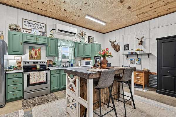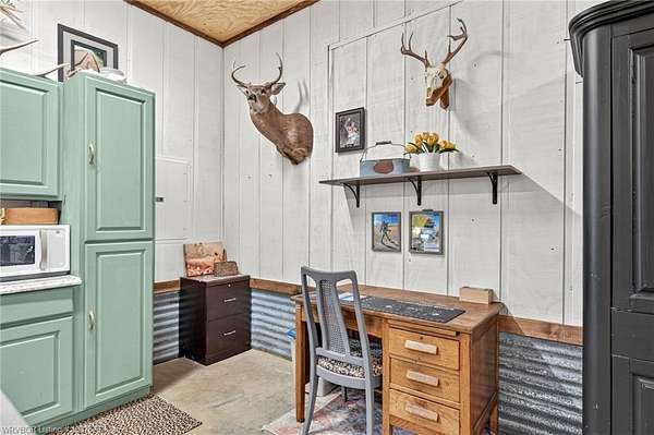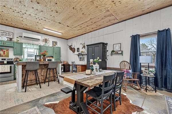 Welcome to Your Country Escape! Discover the perfect blend of rustic charm and modern flexibility in this inviting 1,200 sq. ft. barndominium. Whether you are looking for a cozy permanent residence or a comfortable home-base while you build your ultimate dream home, this property offers endless possibilities. This well maintained 1-bedroom, 1-bathroom home features an efficient all-electric layout, complete with washer/dryer hookups and a refrigerator that conveys. Step outside to your covered porch-the ideal spot for morning coffee while watching local wildlife. The property comes move-in ready with a functional storage shed and a charming chicken coop already in place. Don't miss your chance to own this great property!