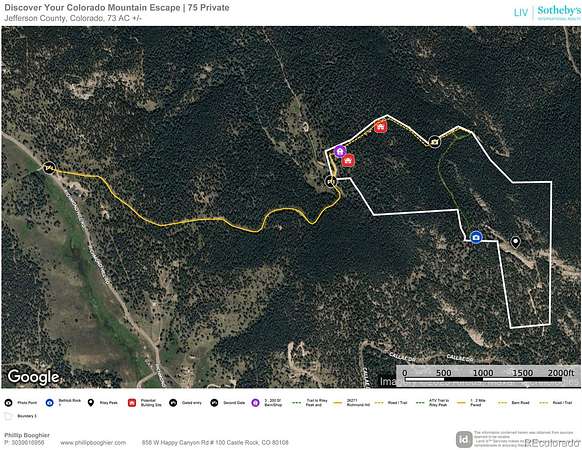 Experience 75 acres of pristine wilderness featuring the iconic Riley Peak, private gated access, a 40' x 80' outbuilding, miles of private trails, abundant wildlife, and multiple ideal building sites—all just 30 miles from Denver.