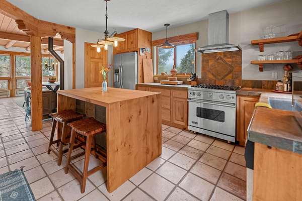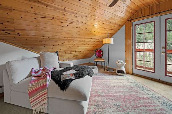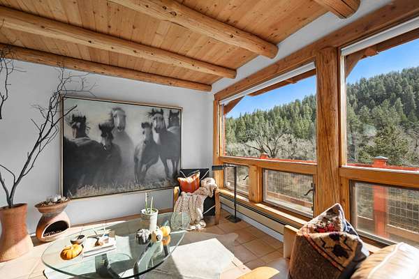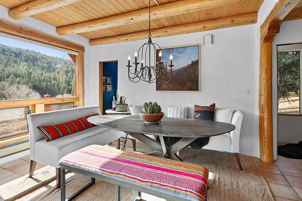 Just 10 minutes from the Plaza yet a world away, this 6.82-acre private retreat is the chic Taos getaway you've been waiting for. Stylish, cozy, and wonderfully versatile, the property offers room to breathe-and room for your horses, goats, chickens, and whatever else your countryside heart desires. The main home features three bedrooms, two baths, and *two* living rooms-ideal for spreading out, entertaining, or simply enjoying a little extra elbow room. South-facing and filled with warm natural light, the spaces feel serene and connected to the surrounding forest. Pour a cup of something delicious, sink into your stylish living room, and take in tranquil wooded views that shift with every season. And then there's the bonus: a renovated mid-century cabin-one bedroom, one bath-perfect as a guest house, studio, or that creative escape you've been promising yourself. It's bright, sunny, and sits on the "warm side of the street," making it a year-round delight. A fenced backyard keeps pets happy, while the two-car garage adds practicality to the property's charm. With acreage to roam and the Plaza just minutes away, this is the rare Taos property that blends privacy, personality, and possibility in all the right ways. If you're searching for a home that feels like a retreat-but still keeps you close to everything-this one checks every box.