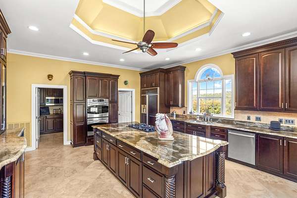 - Built-In Electric Oven, Built-In Gas Range, Cooktop, Dishwasher, Disposal, Double Oven, Freezer, Microwave, Refrigerator, Stainless Steel Appliance(s)