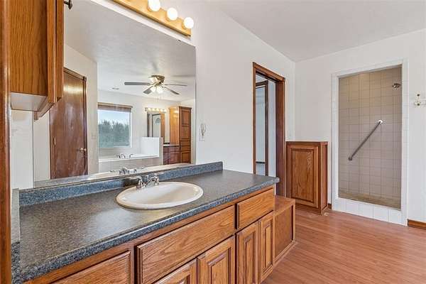 The property also includes a detached 2-car garage connected by a covered, enclosed walkway, providing sheltered access in any season. A large shop on the acreage offers substantial room for storage, equipment, or workspace.