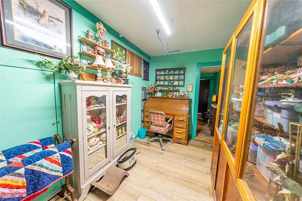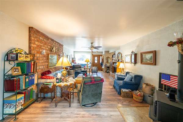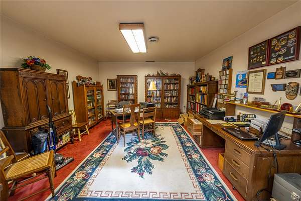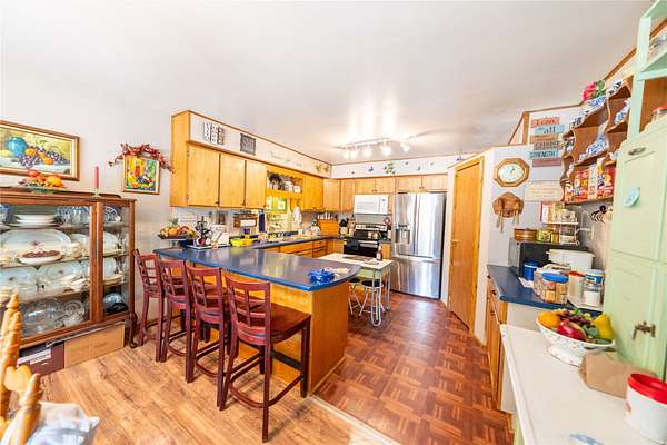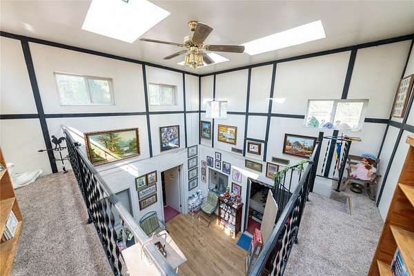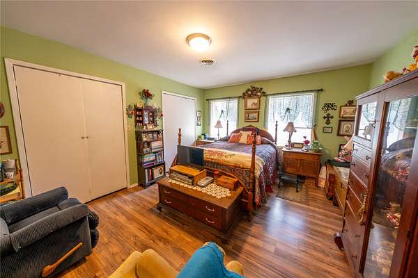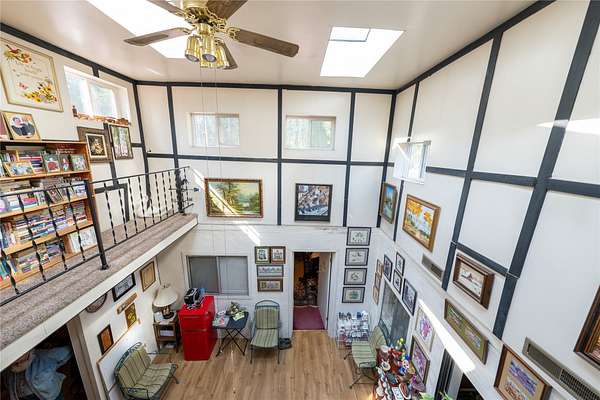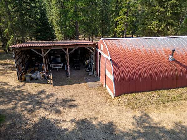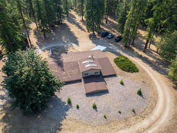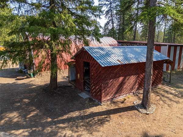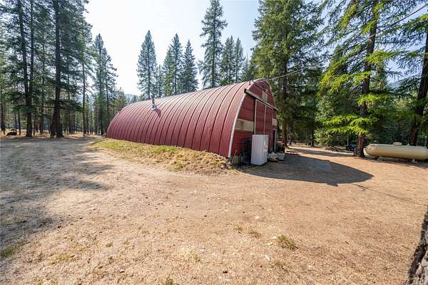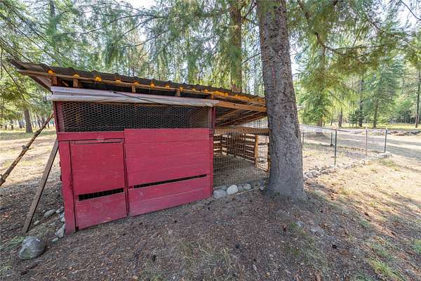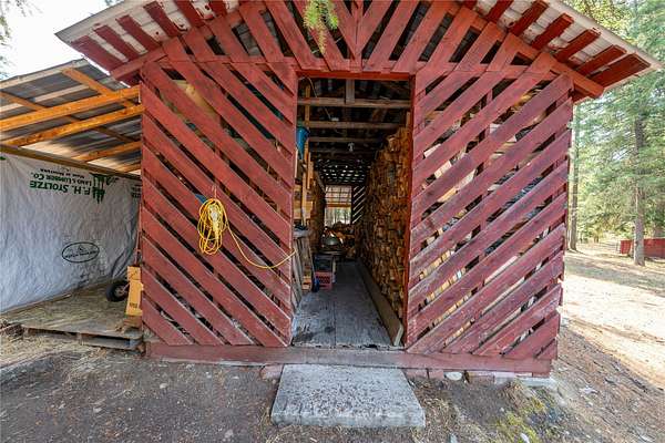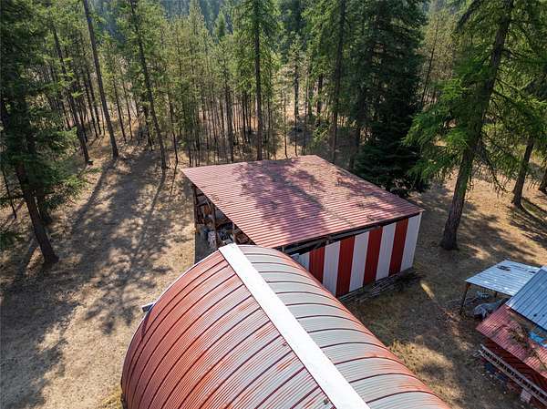 End of road private 5 acres, Earth Contact home with an atrium in the center. One of a kind, 4 bedrooms, 2.5 bath home. Includes atrium, office, kitchen and dining area, open living room. Several outbuilding, including a Quison hut garage, concrete floor, drive through doors, with 1/2 bath. Dry Tiny home, with power that could be updated with water and sewer, 3 bay covered storage building, 2 covered woodsheds and a chicken coop with run. Well house. Fenced garden with fruit trees. RV hook up. This one-of-a-kind property and home could be your next private residence, family compound, or commercial venture.