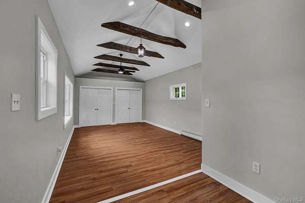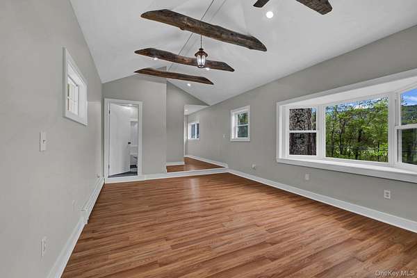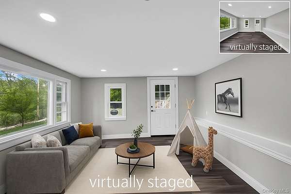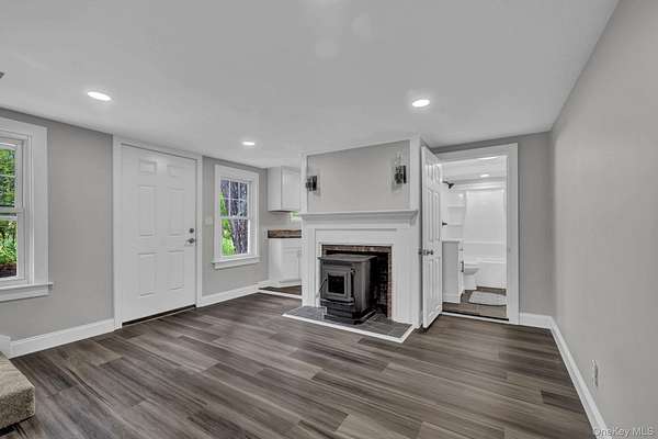Welcome to this beautifully renovated 4-bedroom, 3-bath Colonial style home nestled on 2.9 private acres in the charming town of Amenia, NY. The open concept living room features a pellet stove and access to the kitchen and 1st floor bathroom. The kitchen hs stainless steel appliances and butcher block counters and cute breakfast nook. The laundry room is on the first floor. Aslo on the main level is another large family/living room with access to the outdoor patio. The spacious primary bedroom boasts a large closet beamed ceilings, ensuite bathroom and a picture window with stunning views of the surrounding landscape. Each bathroom has been stylishly remodeled, and the entire home reflects thoughtful updates with quality craftsmanship. Enjoy plenty of parking, an outdoor patio perfect for grilling or a future hot tub setup, and proximity to hiking trails and outdoor recreation. Whether you're seeking a full-time residence or a weekend escape, this home offers the perfect blend of comfort, convenience, and natural beauty.Just 90 minutes from NYC and minutes from the Wassaic train station, this move-in ready property blends modern elegance with country serenity. Step into a sun-filled living room featuring a cozy fireplace and seamless flow into a brand-new kitchen with high-end appliances and designer finishes throughout.