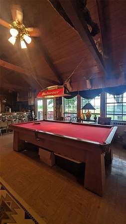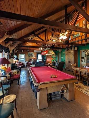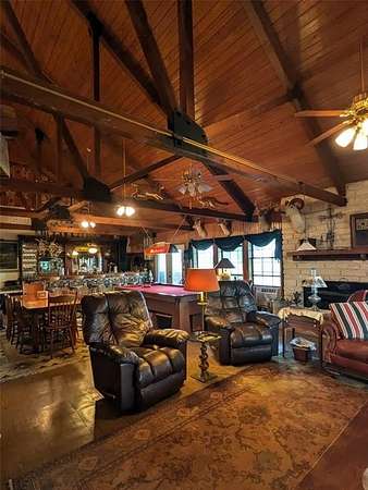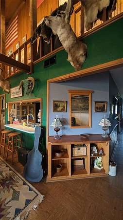 One of the show stopping features is the massive living and entertaining space, complete with wooden vaulted ceilings, custom accents, built-ins, and a full bar with vintage tile work--perfect for hosting family and friends. 300 amp electric