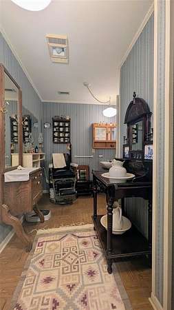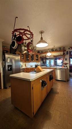 Inside, you'll find four bedrooms and three baths, a living room with an abundance of windows that fill the home with natural light, and a kitchen featuring custom cabinetry, built-ins, and a propane gas stove. The home also includes a large laundry room, mud room, and a basement. A steel spiral staircase leads to the upstairs craft room or library, while a unique walkway provides the perfect place to display art and collectibles. The walkway also gives access to an oversized attic with plywood flooring--ideal for storage or easily finished out as a playroom or game room.