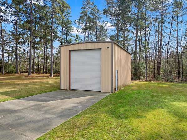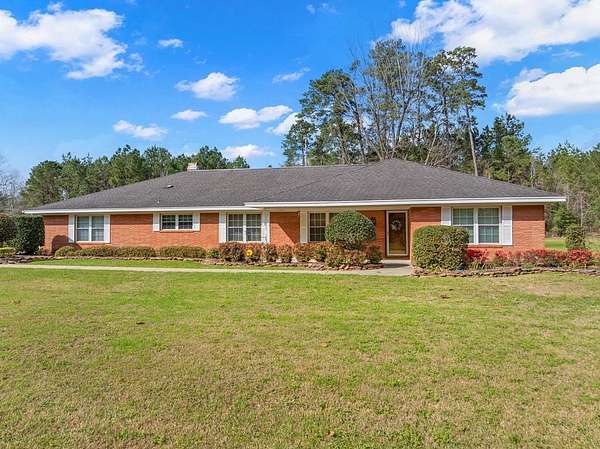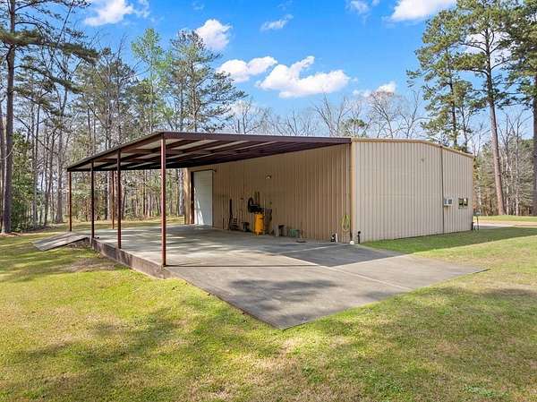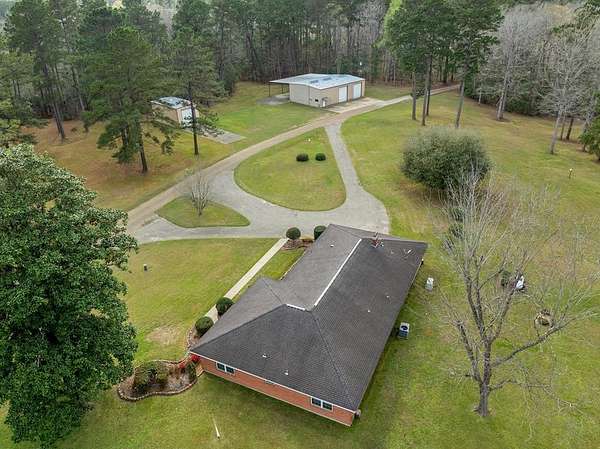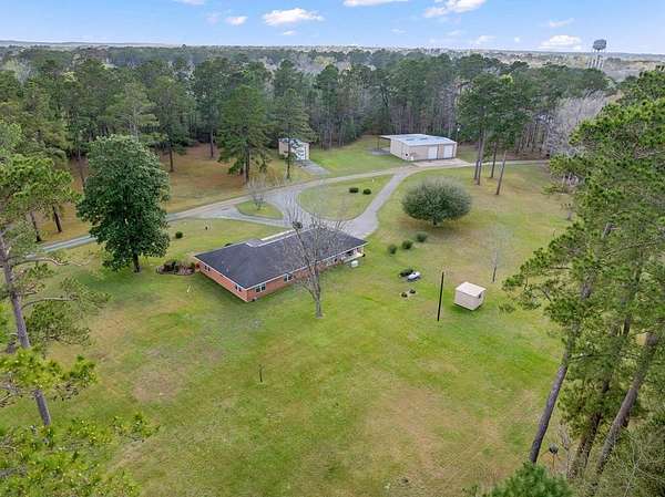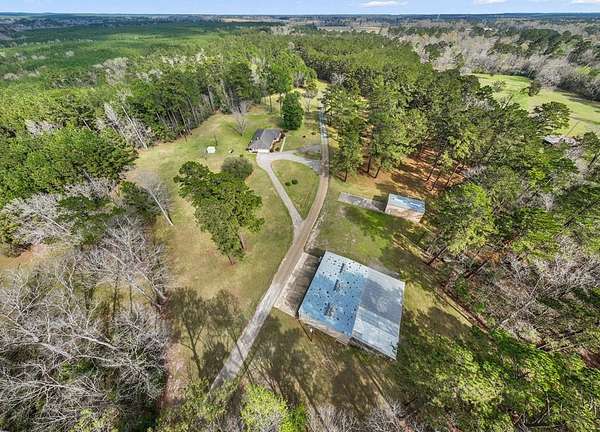 Est $3,903/moHilltop beauty! 3/2 home on 56+ acres tucked in the trees, very private setting. home boasts spacious rooms, formal living/dining, kitchen breakfast room, den with fireplace. Grounds are immaculate, cleared areas with large mature trees, mostly timbered, long county road frontage with easy division if desired, some highway frontage. Large workshop with 3 overhead doors, office, storage room/bathroom. RV/boat storage off back of building, second metal building for storage as well.