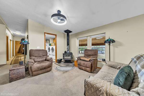 Exceptional 20-acre, fully fenced farmstead just 4 miles south of Ione, offering space, function, and self-sufficiency. 2,400 sq ft triple-wide features 3 bedrooms, 2 baths, and two separate living areas for flexible living. Designed for productivity with extensive infrastructure: 36x48 shop with loft, open shop with attached workroom, hobby shed with 230-volt power, storage shed with three lean-tos, cold storage building, and dedicated beekeeping shed. Property includes rabbitry, turkey and chicken coops, two greenhouses and established, high-yielding vegetable and berry gardens. Approximately 2.5 acres fenced hay/grazing field plus fenced pasture area and open barn for animals. Year-round creek runs through the property.