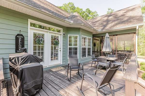 4BR/2BA home located just minutes from town, perfectly positioned on Murphy Mill Pond and the GSW Golf Course! This well-appointed home features a kitchen with tile backsplash, a spacious primary suite with a garden tube, separate tile shower, and two walk-in closets. Enjoy outdoor living with a screened porch, deck, and fire pit area-ideal for relaxing or entertaining. Upstairs offers a versatile bonus/4th bedroom room, plus a small office for added functionality. A great blend of comfort, space, and location! Call May Kathryn to view this home