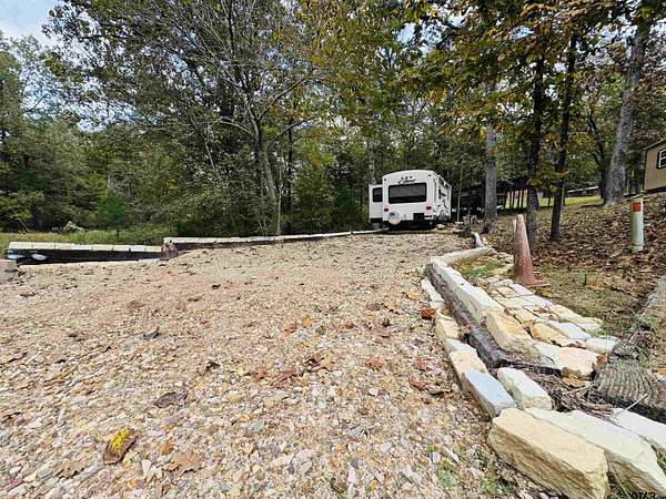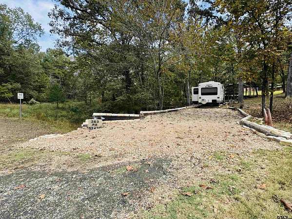 A rural lot turned into an RV'ers dream! Escape to the piney woods of East Texas and enjoy all the lake views Lake Bob Sandlin has to offer. This Hidden Village hidden gem has undergone several necessary improvements to truly make RV life simple. It has been wired for a 20 and 30amp plug, has a new 500 gallon holding tank, and a new RV pad with additional limestone added to the driveway and surrounding RV area. Additionally, a railroad tie retaining wall has been installed and reinforced to allow a level fire pit area separate from the RV pad and parking. Bi-County water is coming soon, with personal water meter and hookups! This particular lot is within walking distance to the common area/pavilion with full bathroom amenities, boat ramp, and fishing dock. There is also a storage unit included to lot owners! The community is one brag about and we all know great neighbors make all the difference! Pack up the RV, the golf cart, and your spouse and come stay a while!